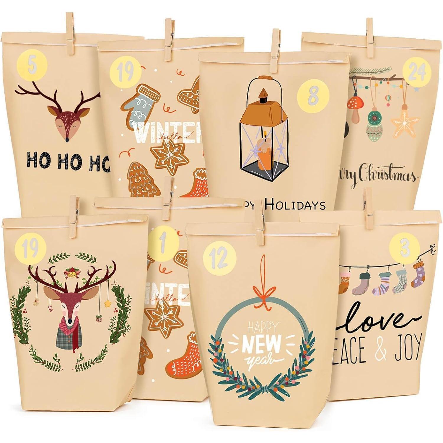 Adventskalender zum Befüllen - 24 Papier Weihnachtstüten zum