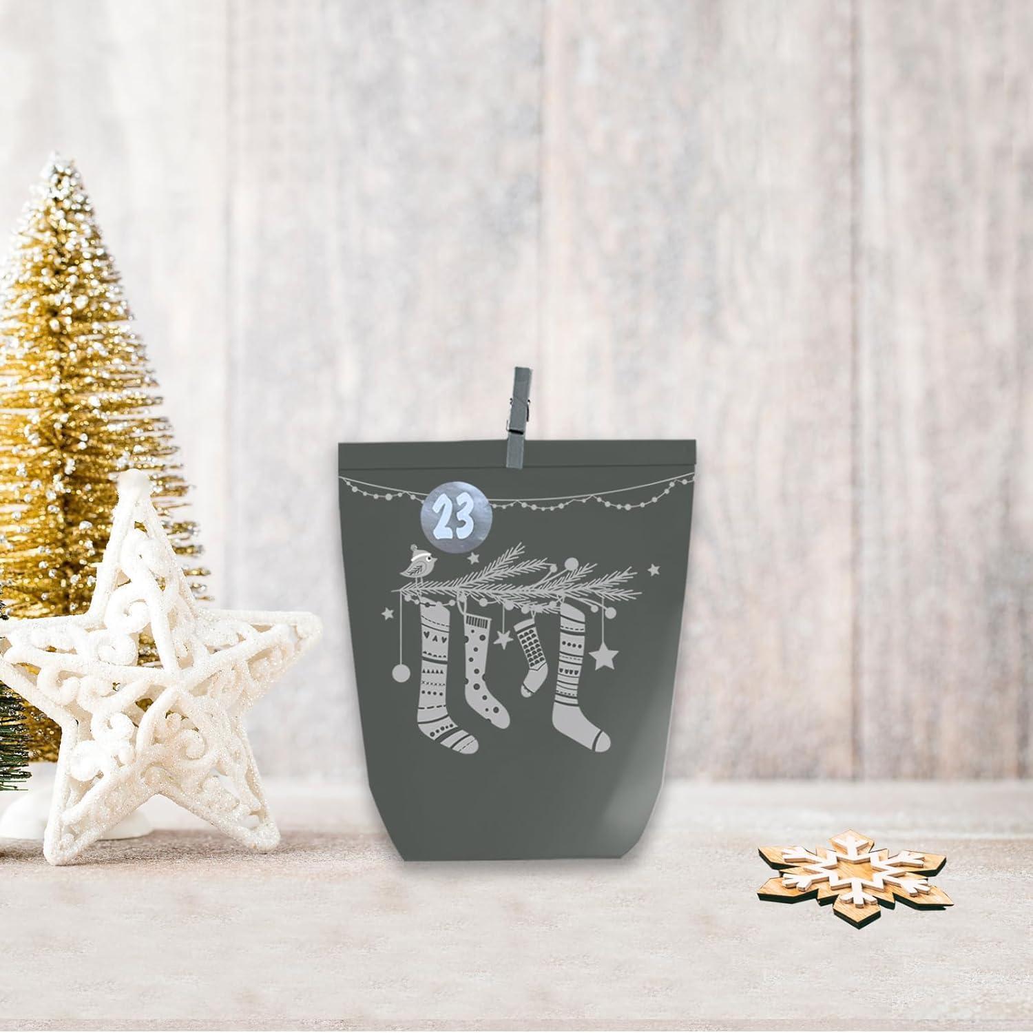Adventskalender zum Befüllen 24 Weihnachts Papiertüten Blau