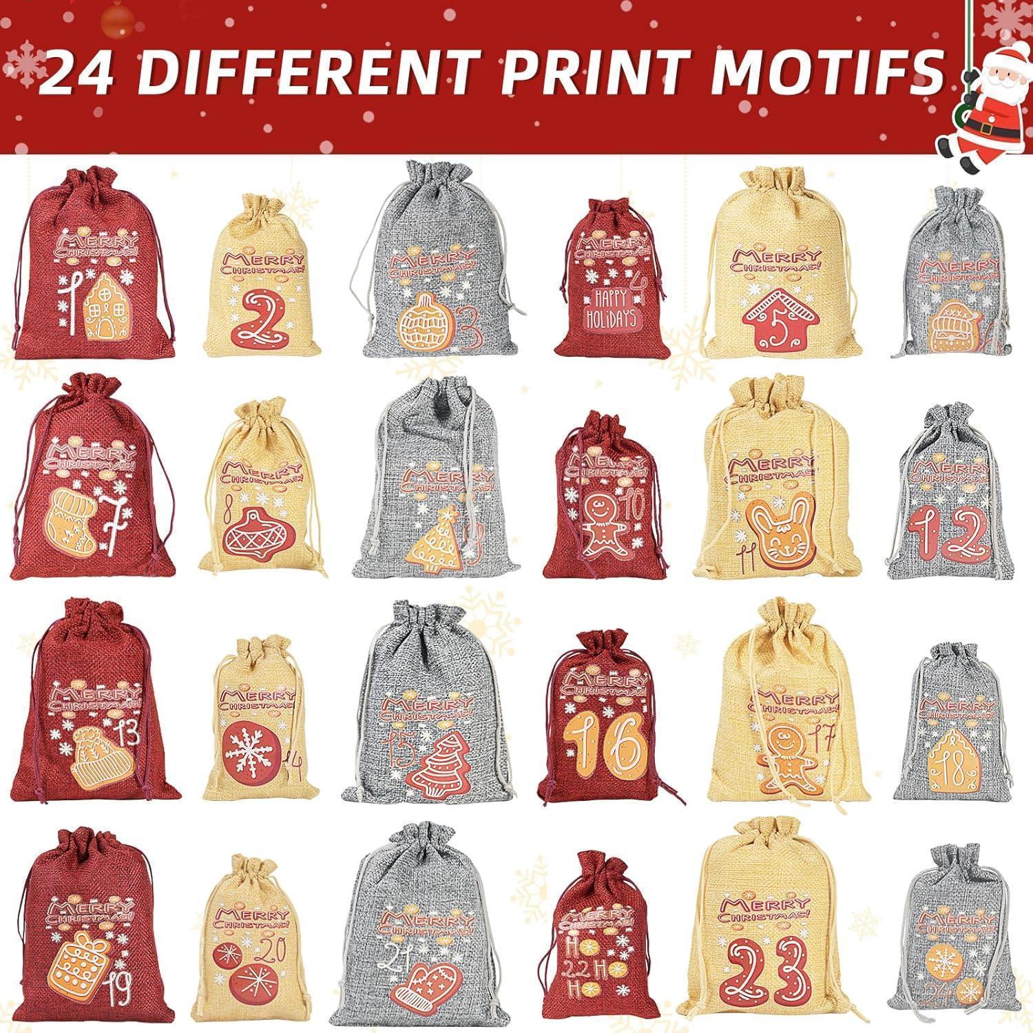Langlebige Adventskalender zum Befüllen Stoff: Unsere adventskalender zum befüllen tüten sind aus hochwertigem Canvas-Material gefertigt. Sie bieten ein angenehmes Gefühl, einen gestochen scharfen Musterdruck und eine exquisite Verarbeitung. Zudem sind sie waschbar und wiederverwendbar, sodass sie auch im nächsten Jahr wieder verwendet werden können. Das Kordelzug-Design ermöglicht ein einfaches Befestigen und Lösen.