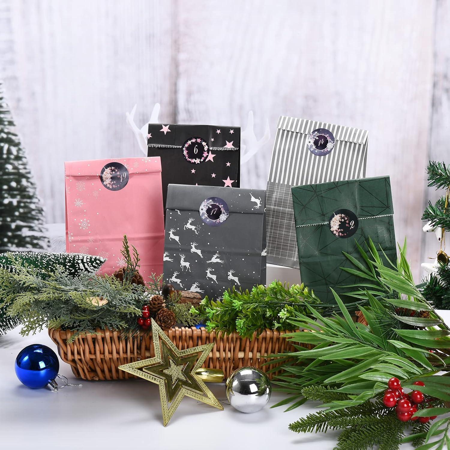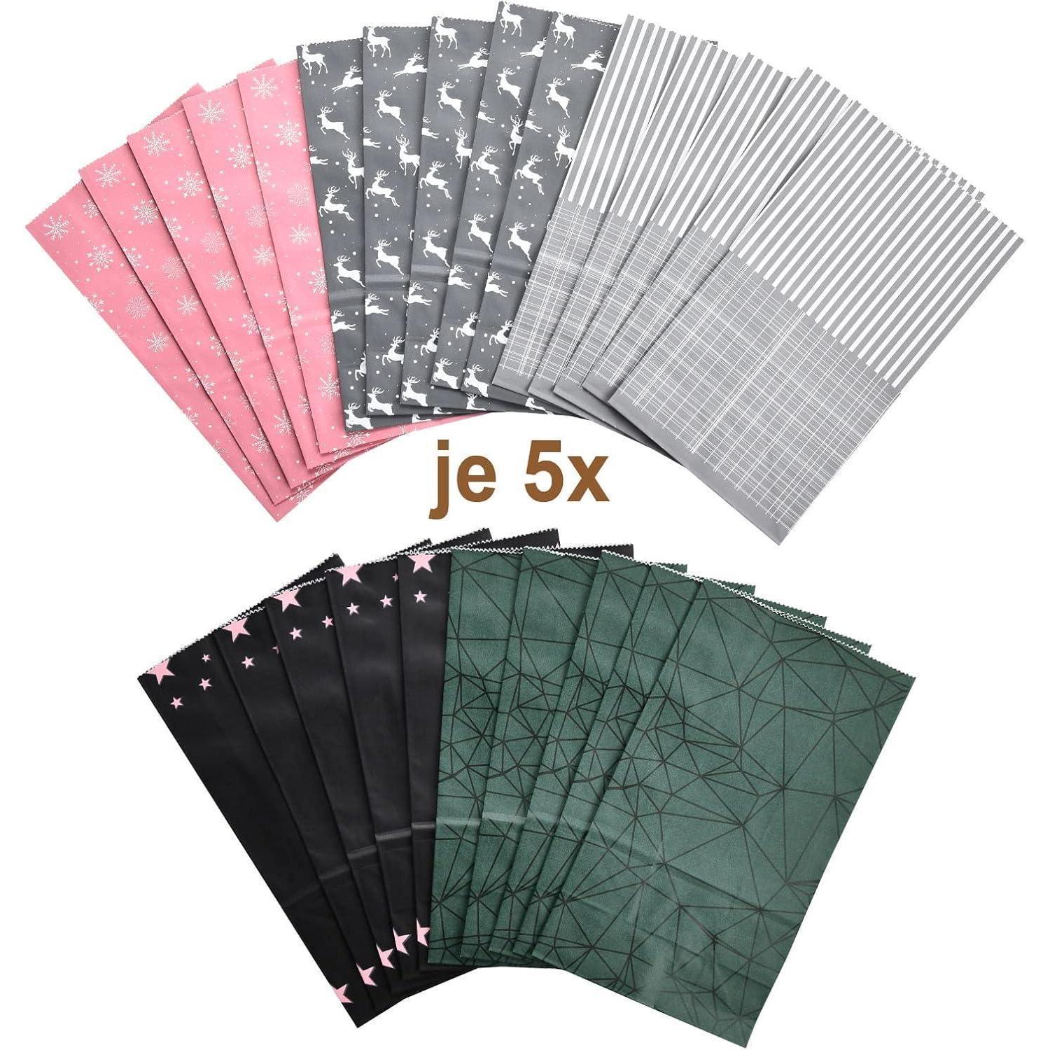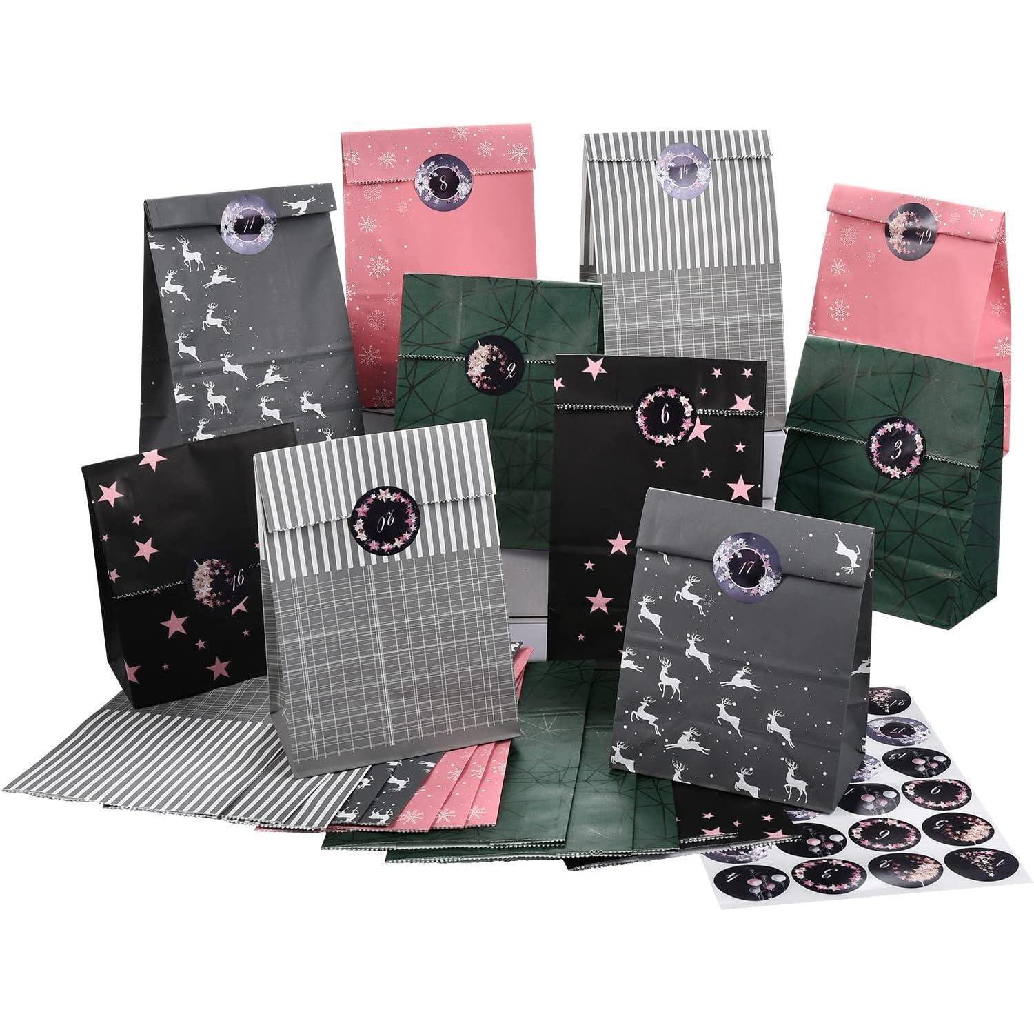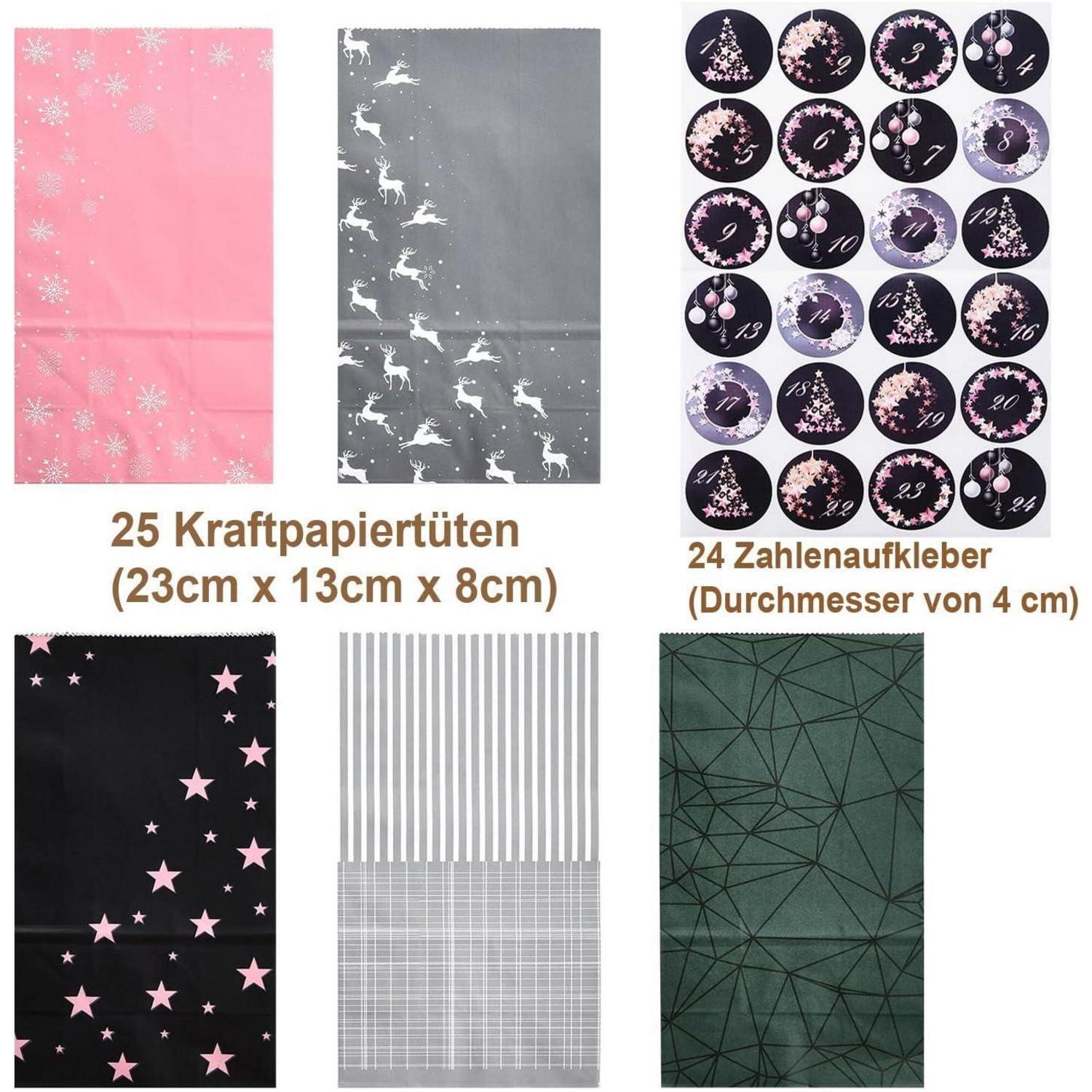 Adventskalender zum Befüllen in Rosa/Schwarz/Grau, 24 Tüten