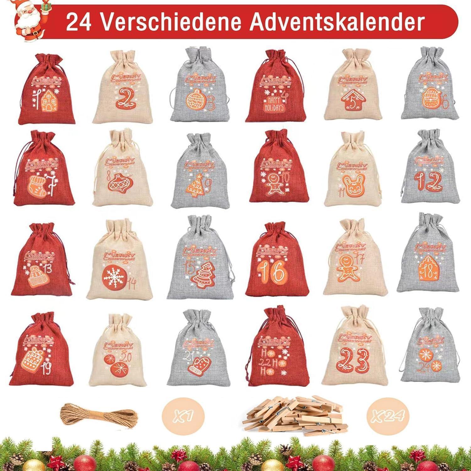 Adventskalender zum Befüllen Kinder Stoffbeutel