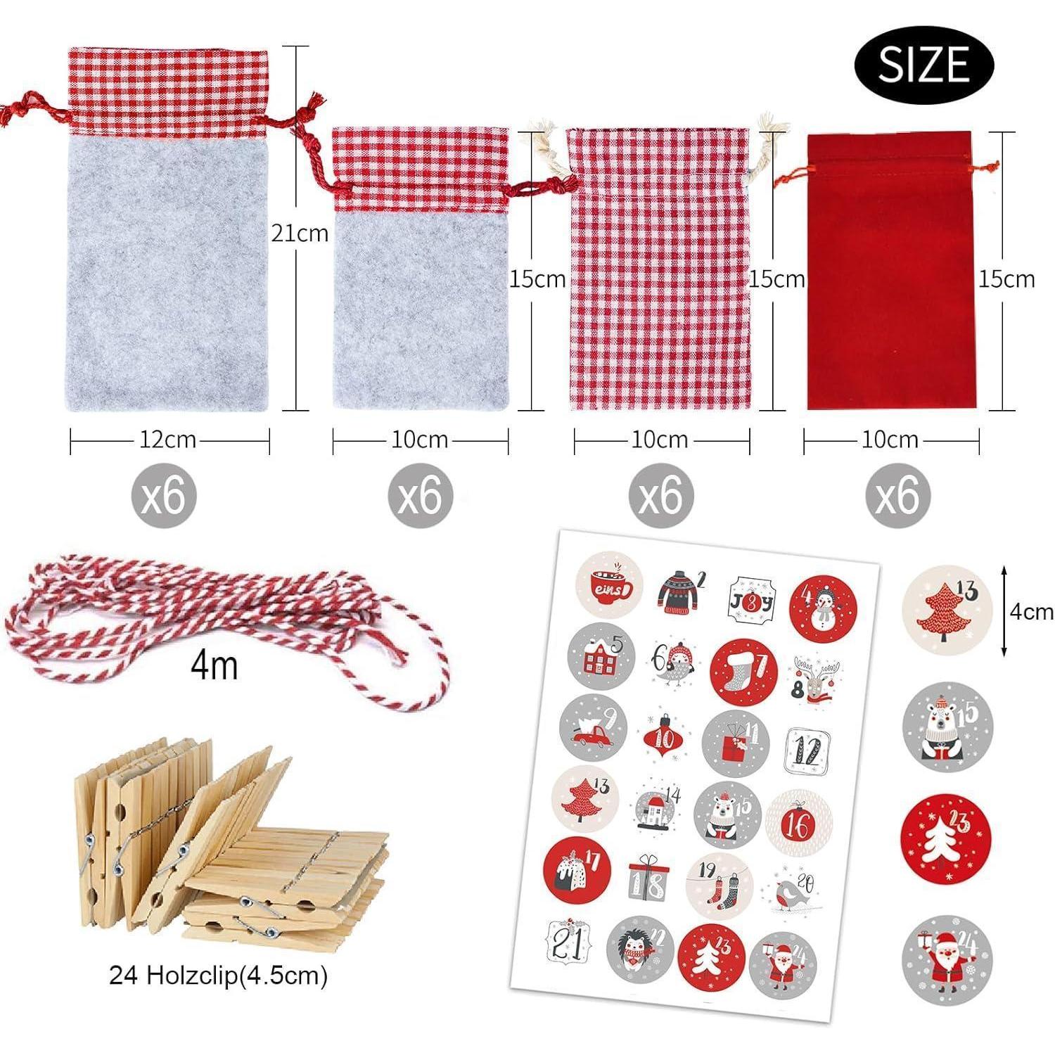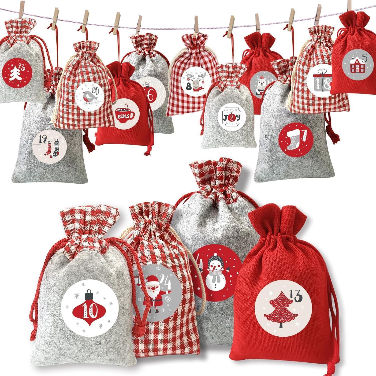 Adventskalender zum Befüllen: Ein einzigartiges Set mit 24 Stoffsäckchen, um Ihren eigenen Adventskalender zu gestalten