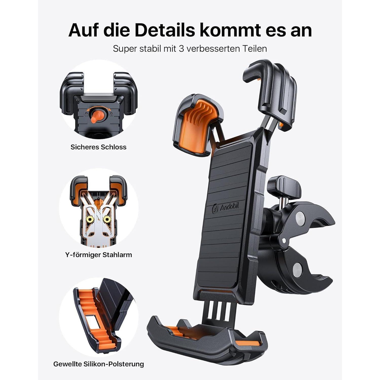 Die andobil 2024 Handyhalterung Fahrrad ist die ultimative Lösung, um Ihr Smartphone sicher und zugänglich während Ihrer Fahrrad- oder Motorradfahrten zu halten. Mit einer Garantie von bis zu 3 Jahren können Sie sich auf die Qualität verlassen. Die Halterung passt zu einer Vielzahl von Lenkern und Handymodellen, von 4,5 bis 7 Zoll, einschließlich iPhones, Samsungs und Pixels.