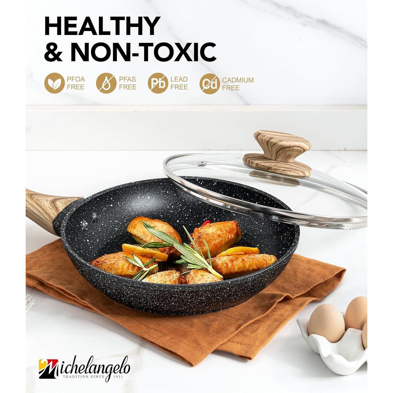 Antihaft-Bratpfanne 26cm mit Deckel und Holzgriff