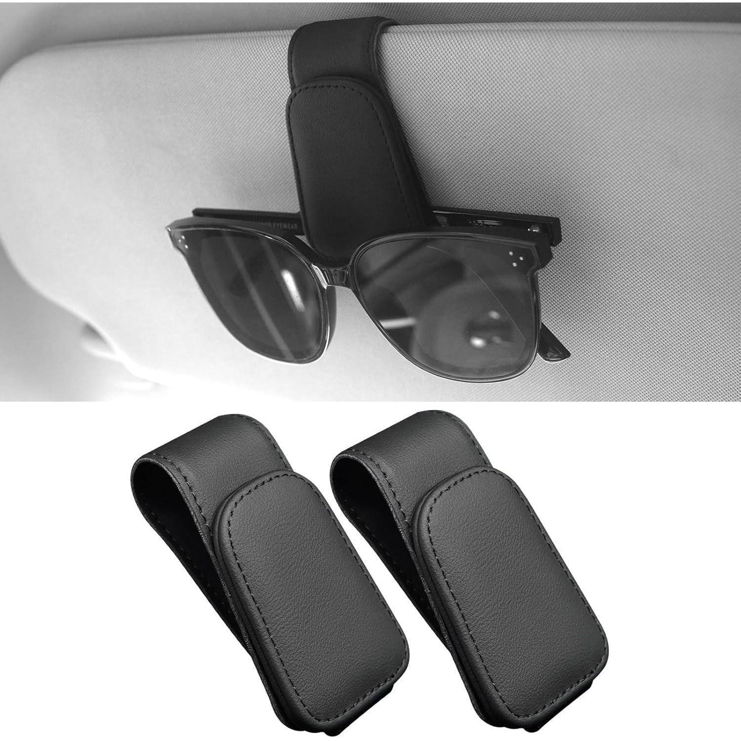 Anwlki Auto Sonnenbrillenhalter Schwarz Leder 2er Pack