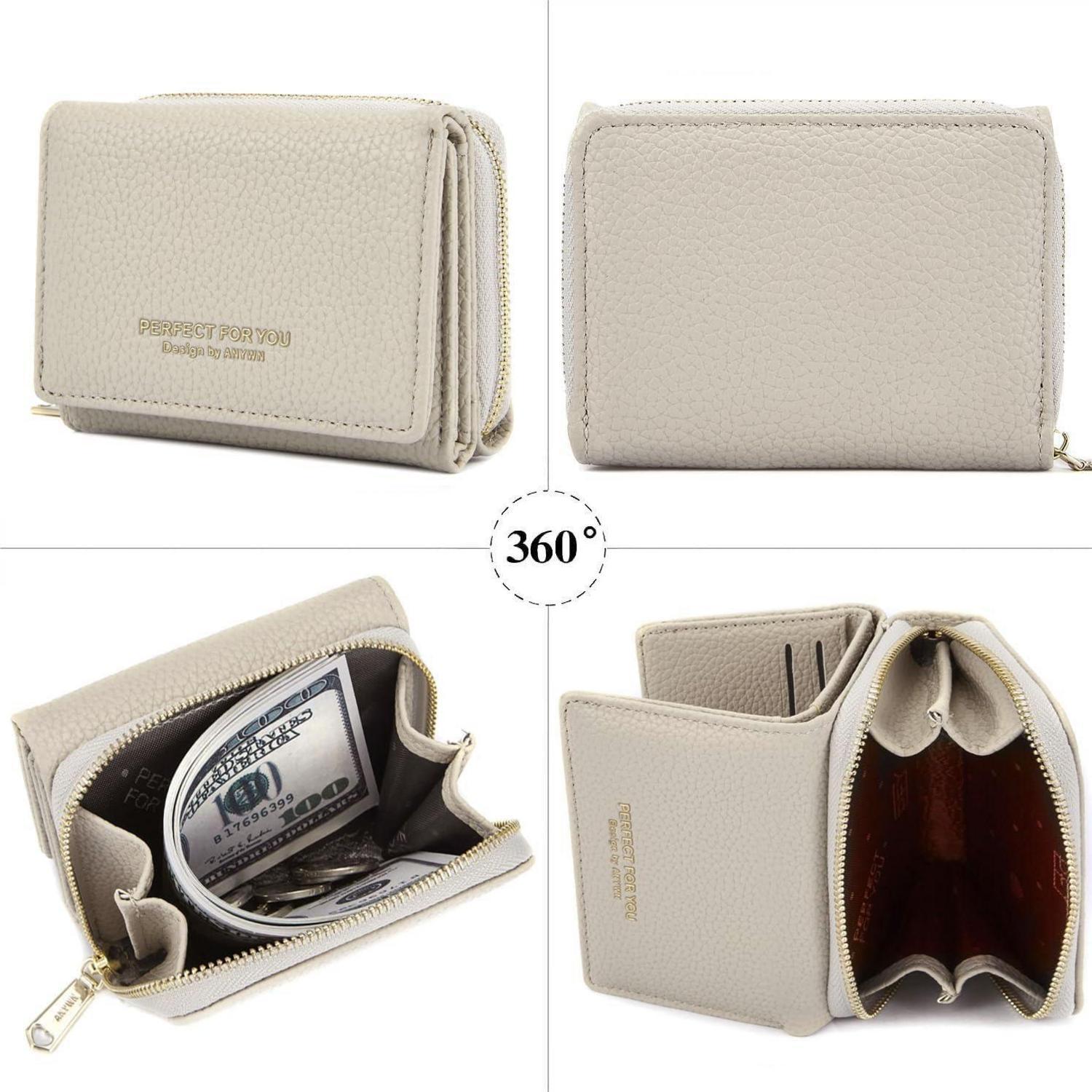 ANYWN Damen Geldbörse klein Münzfach veganes Kunstleder