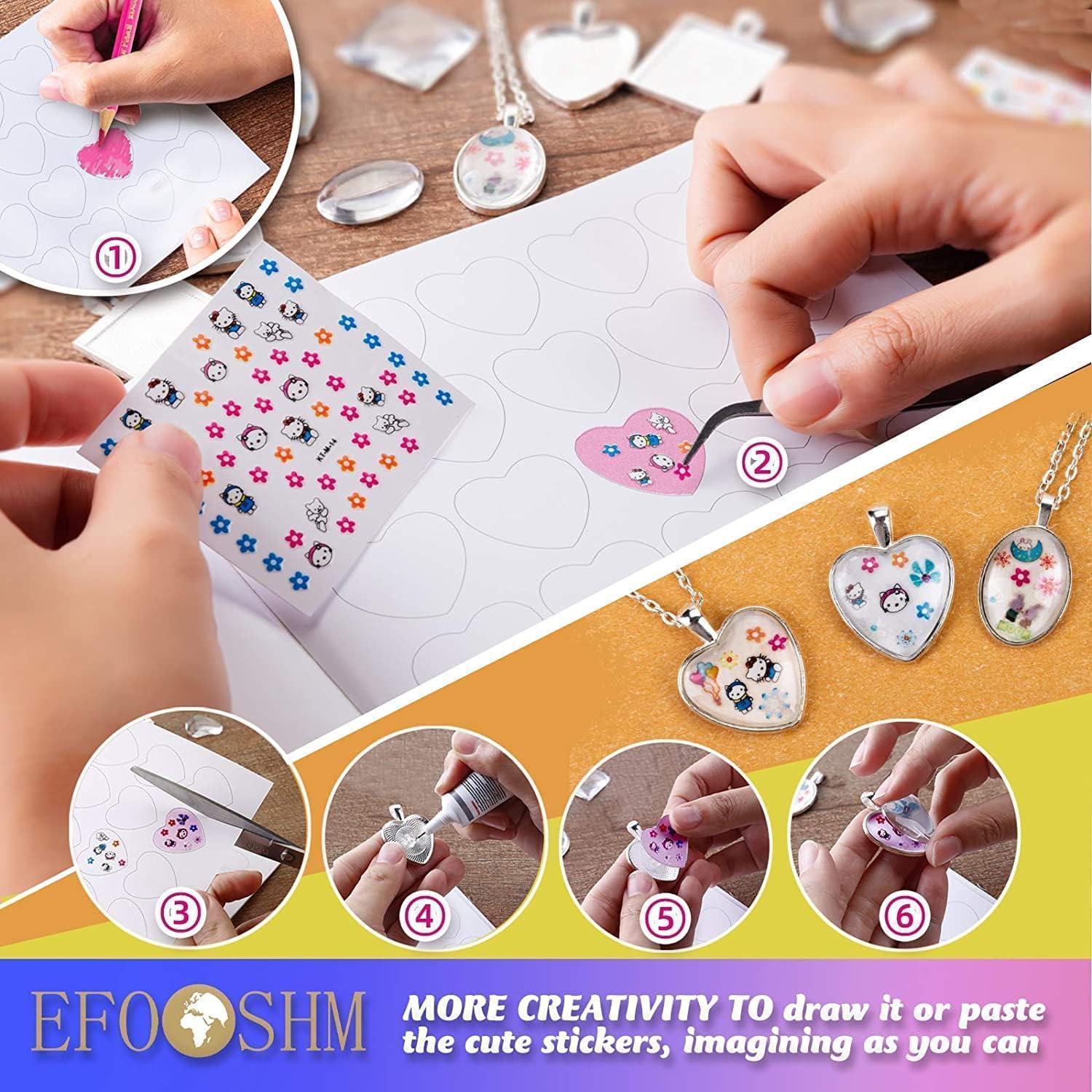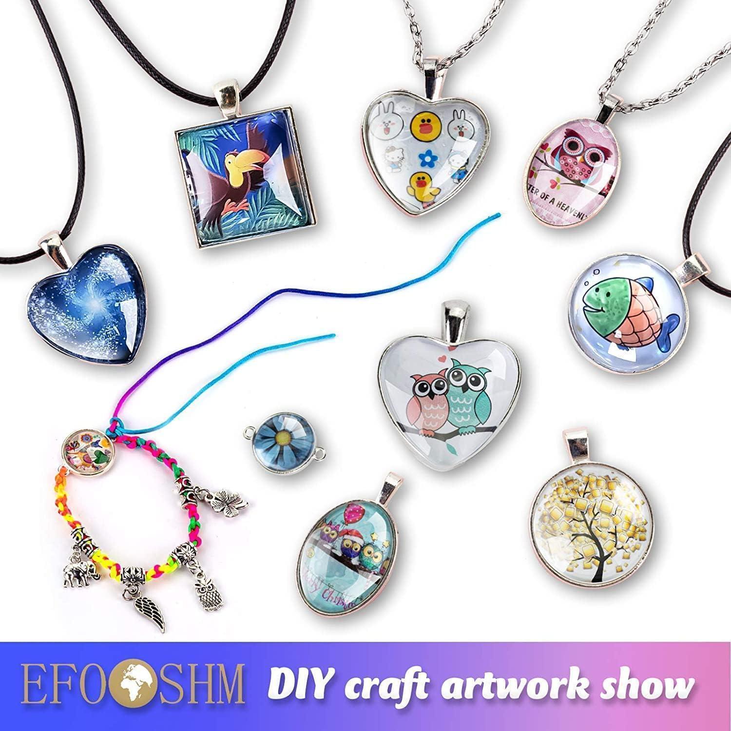 Das EFO SHM Bastelset ist die ideale Wahl, um Schmuck nach Ihren Vorstellungen zu gestalten. Mit 24 Metallanhängern, 24 klaren Harzanhängerabdeckungen, 18 Buntstiften, 16 Metallperlen mit Dekoration, 10 Silberketten, 10 Halskettenbändern, 4 bunten Schnüren und über 250 Blättern mit Bildern und Anleitungen bietet dieses Set endlose Möglichkeiten.