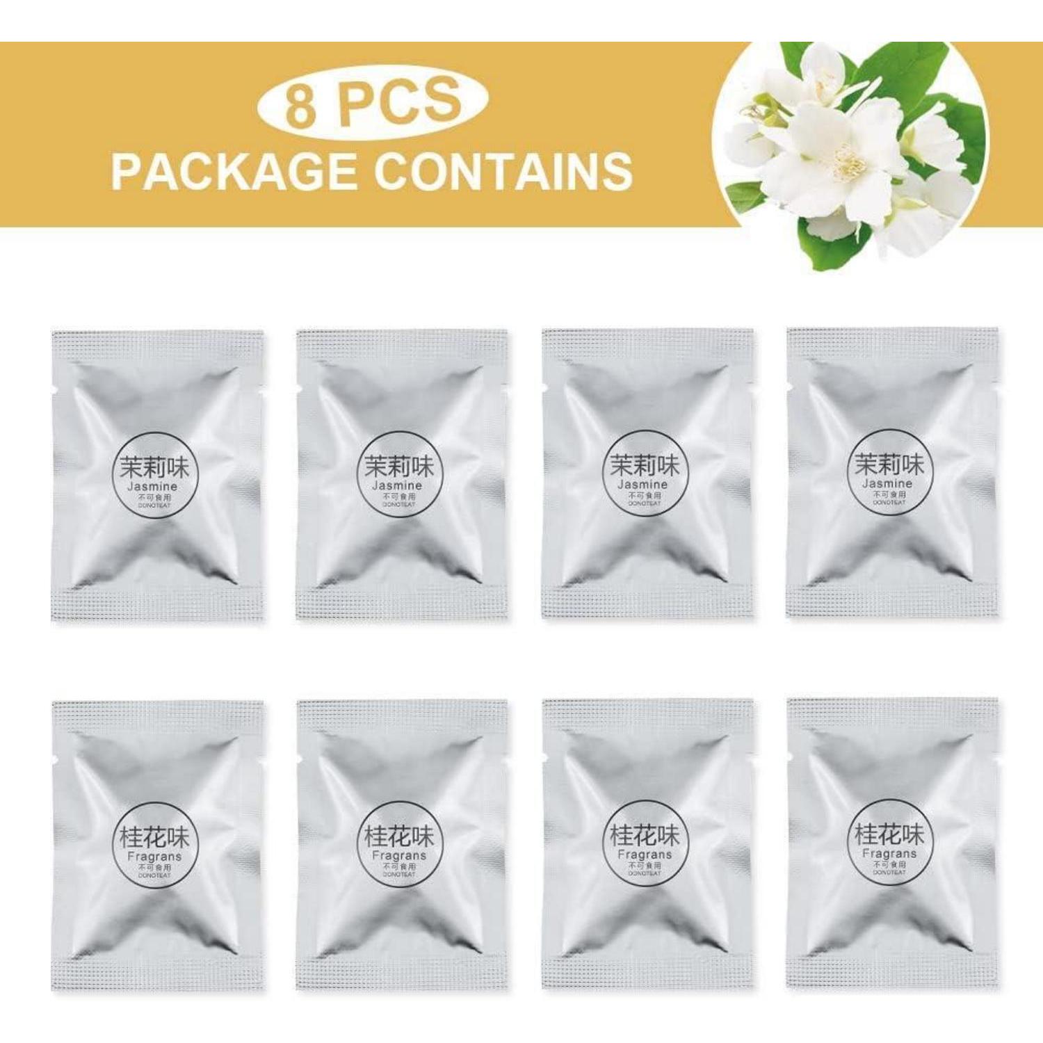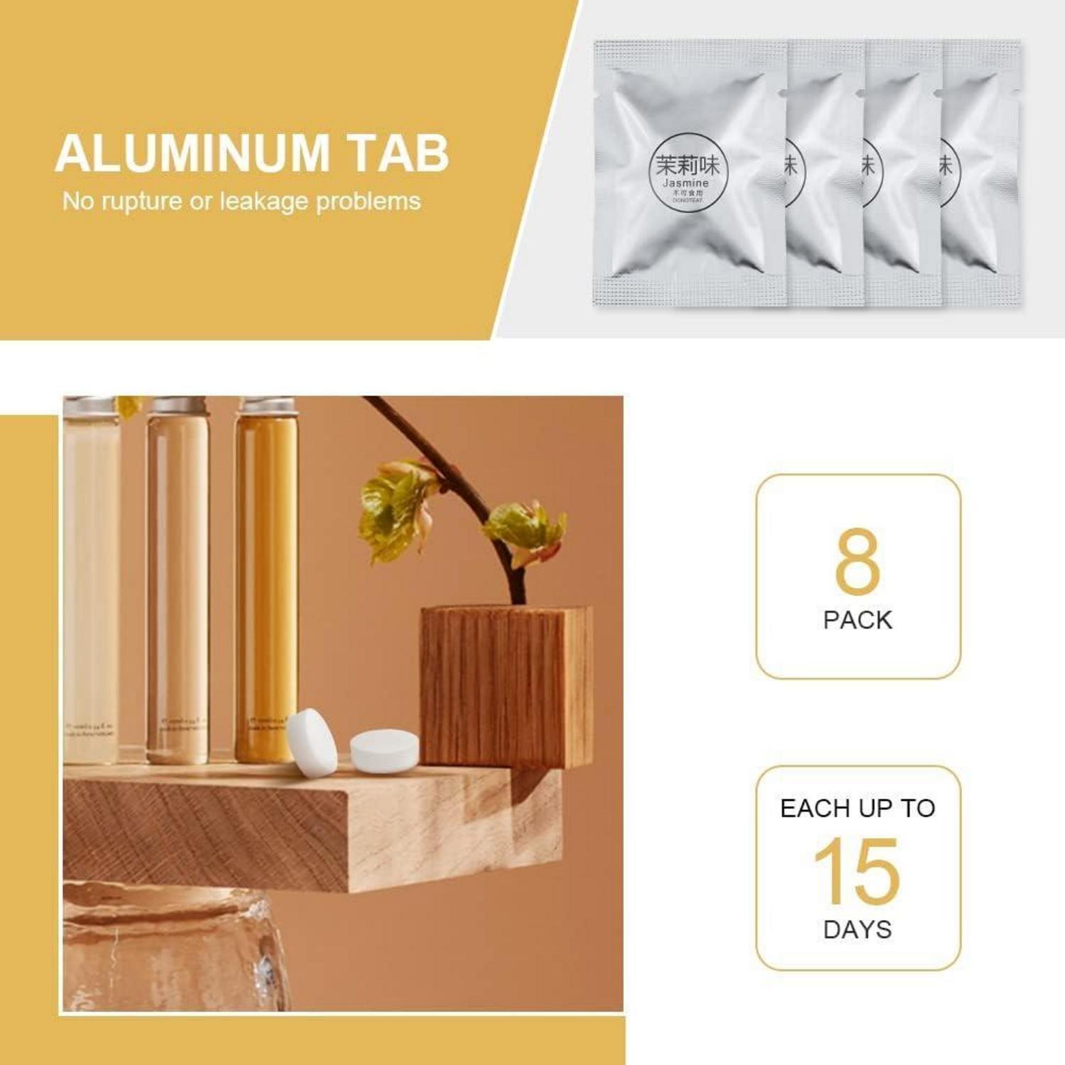 Die Duftflocken sorgen für ein natürlich duftendes Erlebnis. Sie sind sicher in der Anwendung, lassen sich einfach austauschen und bieten einen frischen und langanhaltenden Duft. Dieses Set beinhaltet 4 Tabletten mit Jasminduft und 4 Tabletten mit duftendem Osmanthusduft, die Ihnen eine Vielzahl von aromatischen Möglichkeiten bieten.
