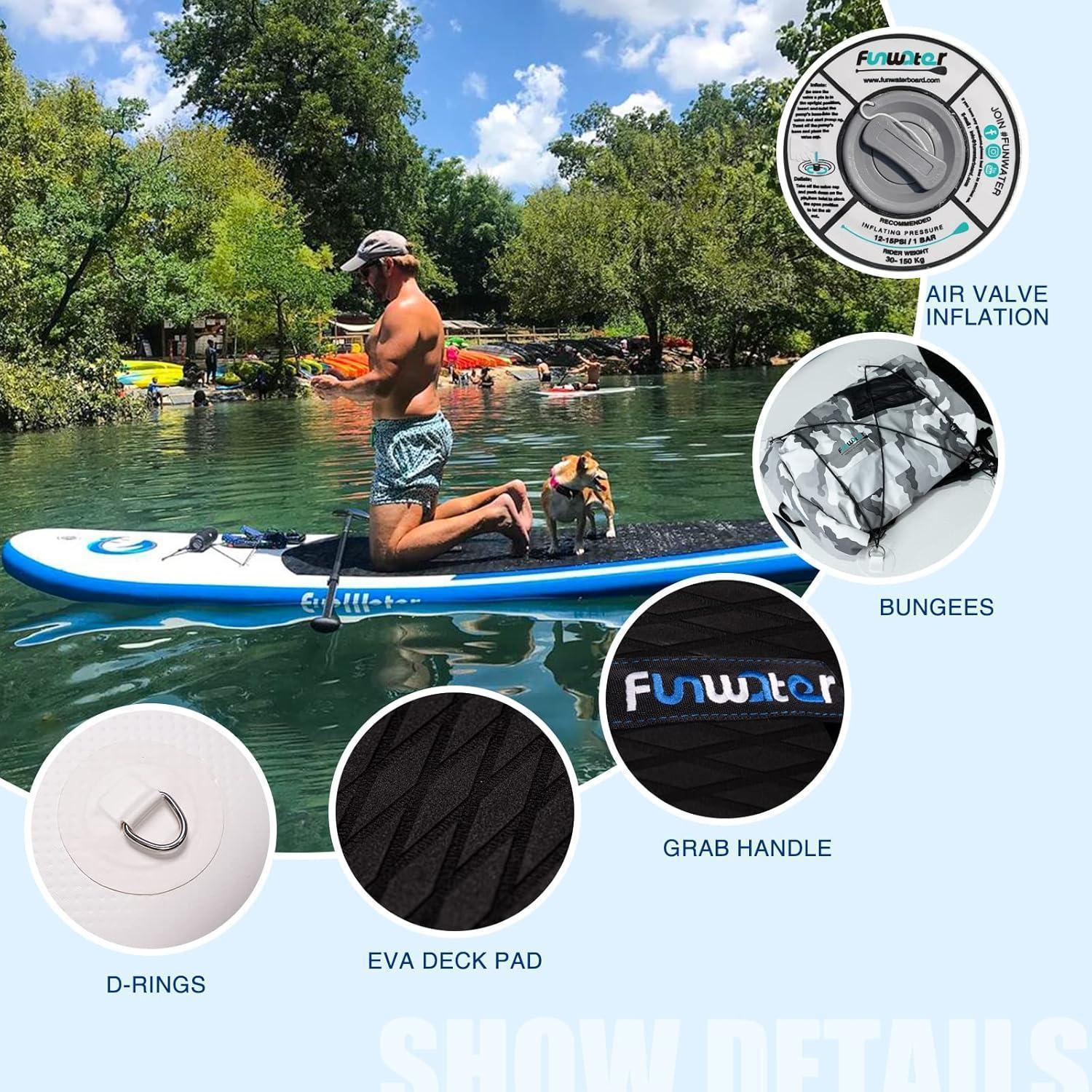 Das FunWater Aufblasbare Stand Up Paddle Board ist die perfekte Wahl für Wassersportliebhaber jeden Levels. Dieses All-inclusive-Paket umfasst alles, was Sie für ein spannendes Abenteuer auf dem Wasser benötigen.