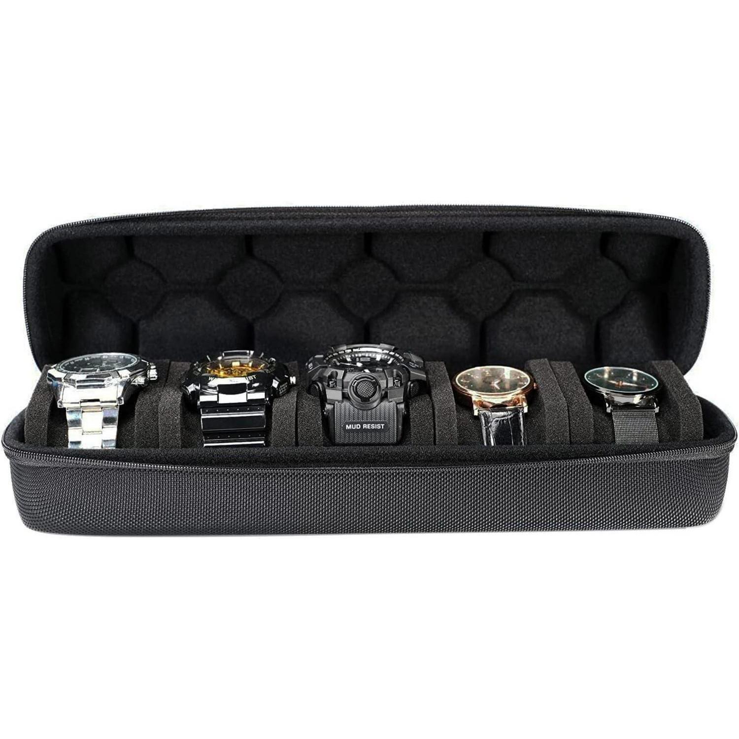 AUKURA Hartes Uhren-Reiseetui Organizer 5 Fächer Schwarz