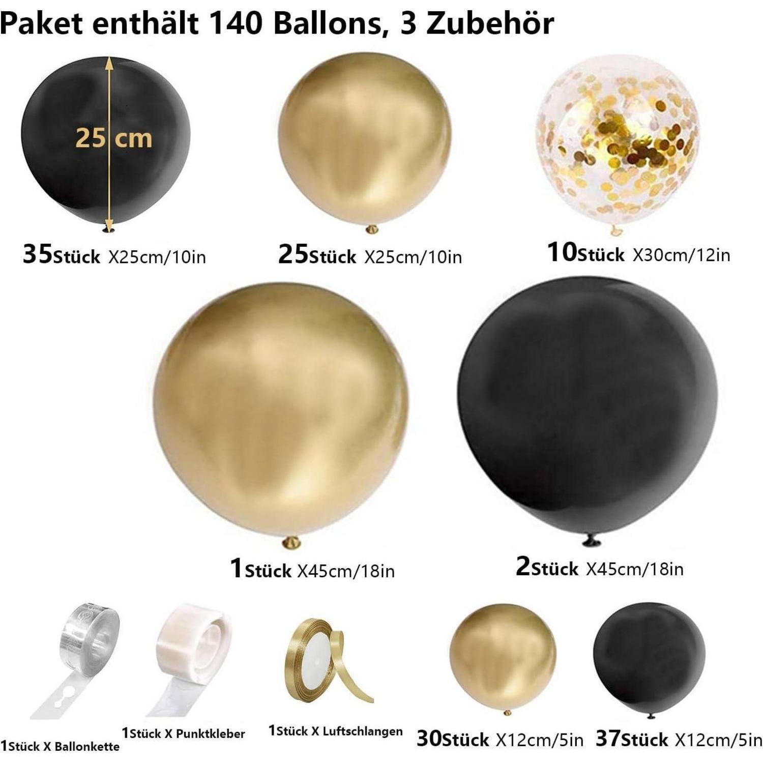 Ballons Gold Schwarz Luftballons Geburtstag 140stk girlande