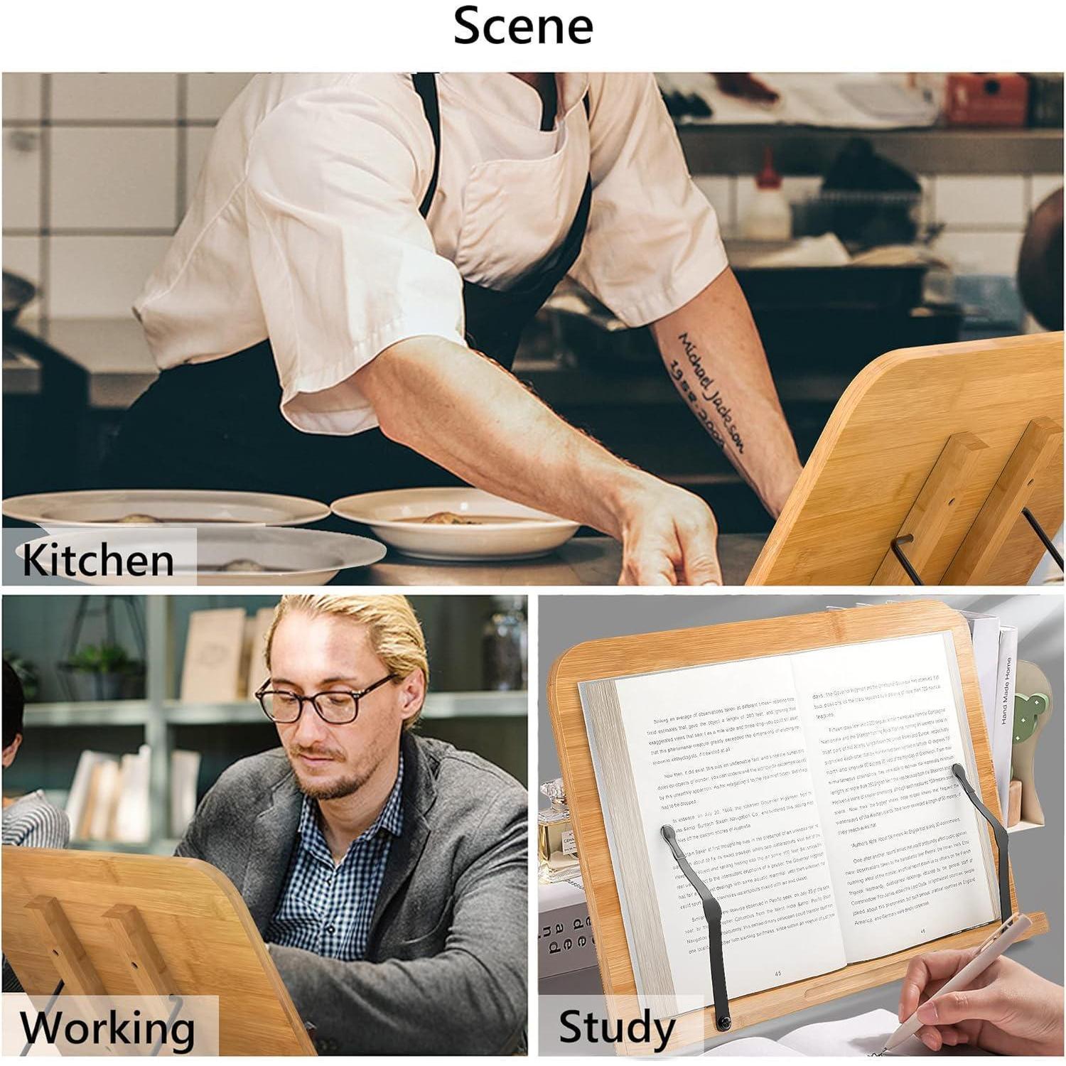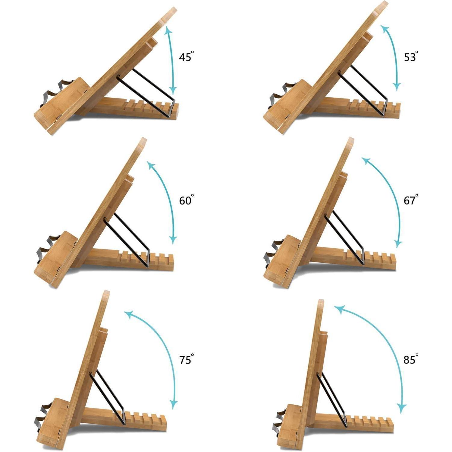 Genießen Sie ein entspanntes Leseerlebnis und verbessern Sie Ihre Haltung mit diesem Bambus Kochbuchständer, der Ihnen hilft, Ihre Lieblingsbücher und -notenblätter stilvoll und bequem anzuzeigen.