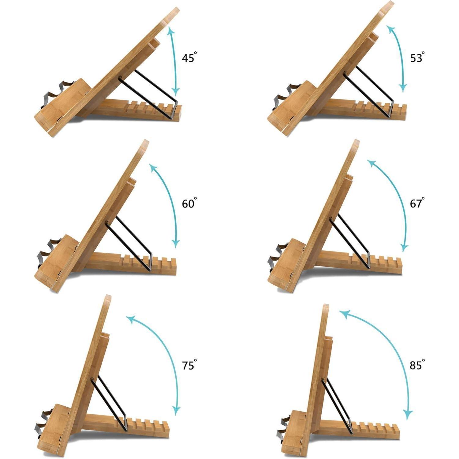 Der Bambus Leseständer Buchständer ist der ideale Begleiter für alle Leseratten und Bücherwürmer. Hergestellt aus hochwertigem Bambus, ist dieser Buchständer stabil und langlebig. Mit der Möglichkeit, den Winkel in 6 verschiedenen Positionen einzustellen, können Sie immer die optimale Leseposition finden, um eine gesunde Haltung beizubehalten und Ihre Wirbelsäule zu entlasten.