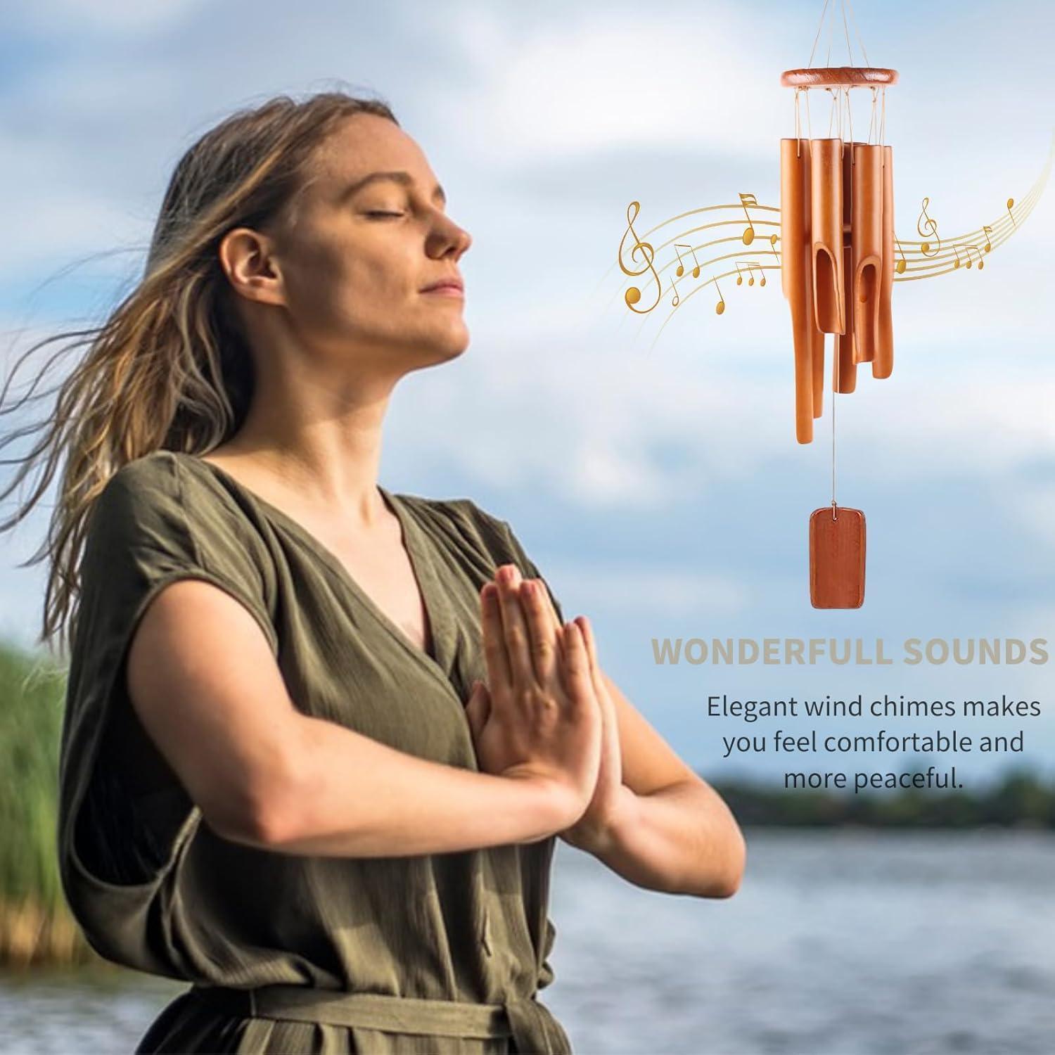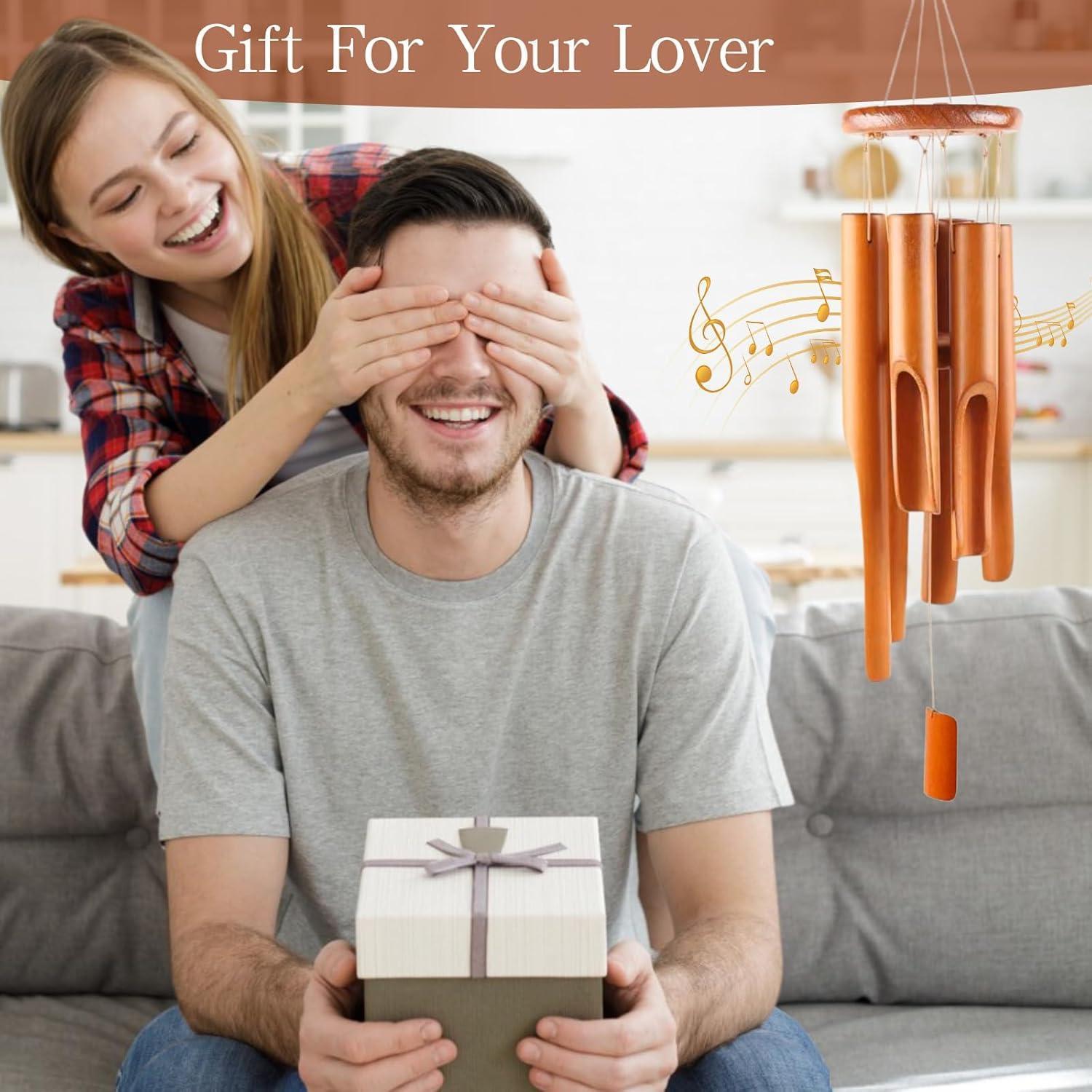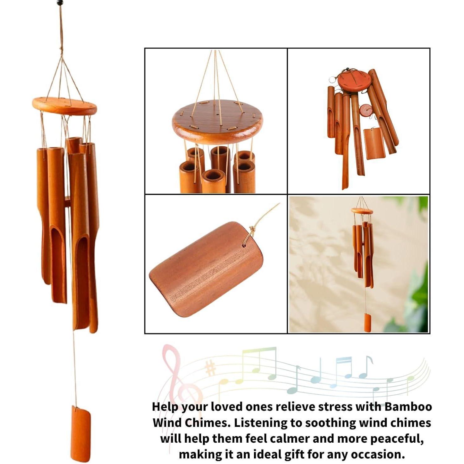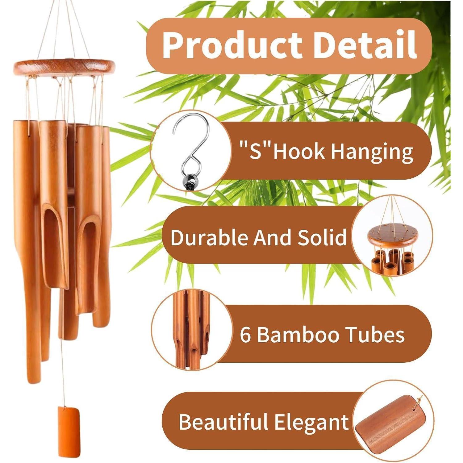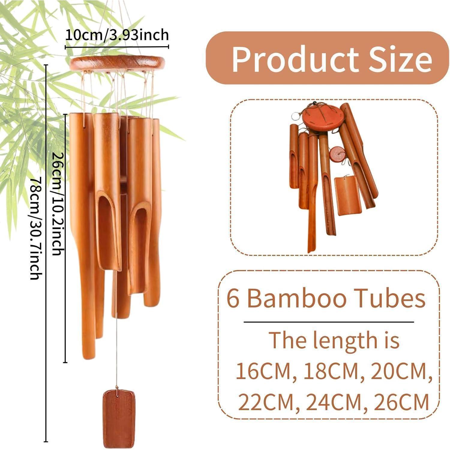 Bambus Windspiel, 6 Rohre Windspiel Holz Draußen Glockenspiel Garten Windspiele für Draußen Hängend Holz, Klangspiel für Draußen Wind Chimes inkl. S-Haken, Gedenk-Geschenke