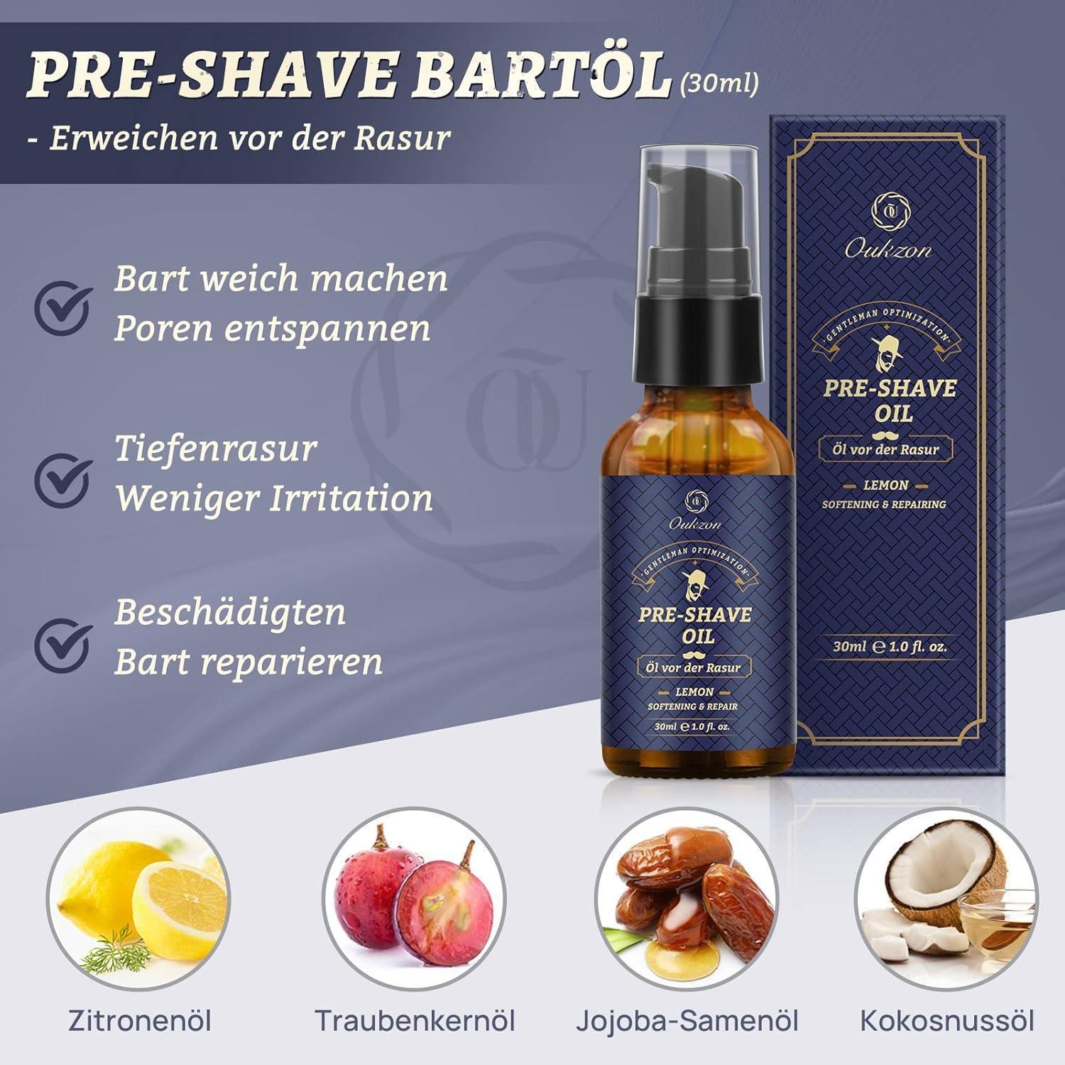 ???? Aufgerüstet Bartpflege Set - Oukzon Preiswert ALL-IN-ONE Bart Rasierset für Männer mit luxuriösen Geschenkbox enthält Bartöl für die Vorrasur, After Shave Lotion, Rasiercreme, Rasierhobel mit 10 Rasierklingen, Rasierpinsel, Bartschablone, Bartschürze, Reisetasche und Handbuch. Das Premium Bartwuchsmittel männer sorgt für einen perfekt gepflegten gesünderen Bart, ist ein beste geschenk für den Papa, den Freund oder jeden Mann mit Bart.