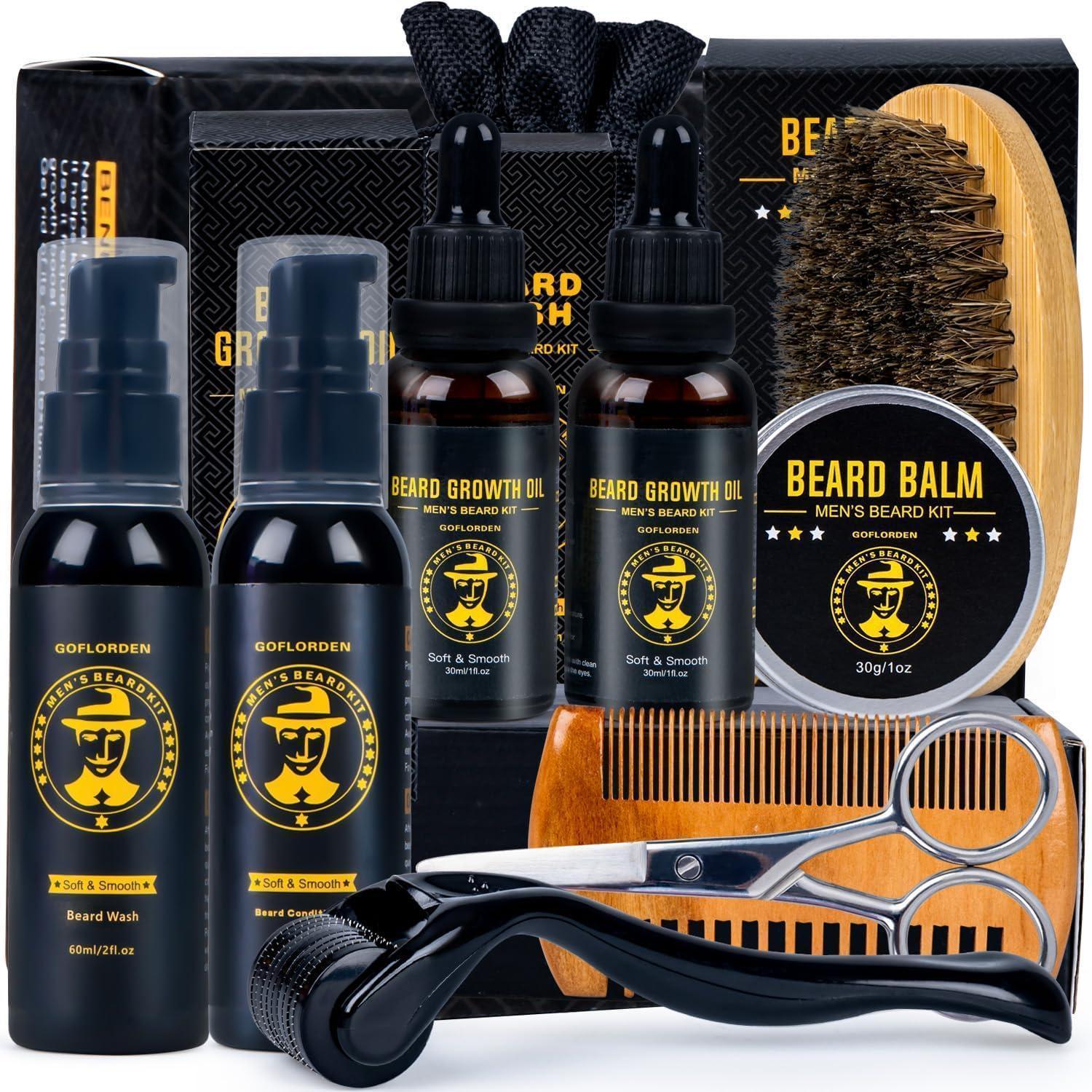 ????Ausgezeichnete Geschenke für Männer, leicht zu tragen: Perfekte Geschenkideen-Sets für Männer. Es ist ein tolles Geschenk für Ehemann, Verlobten, Freund, Vater oder Sohn, geeignet für Vatertag, Geburtstag, Valentinstag, Jubiläum, Weihnachten. Tragen Sie es vor dem Ausgehen auf Ihren Bart auf. Dadurch bleibt Ihr Bart weich, dick, glänzend, ordentlich und gepflegt. Die tragbare Reise-Aufbewahrungstasche organisiert Ihre Bartprodukte einfach. Bartset, Bartpflegeset für Männer, Bartwuchsset mit Bartroller, 2er-Pack Bartwuchsöl, Bartshampoo, Bartspülung, Bartbürste, Bartbalsam, Bartkamm, Schere, Geschenke für Ihn