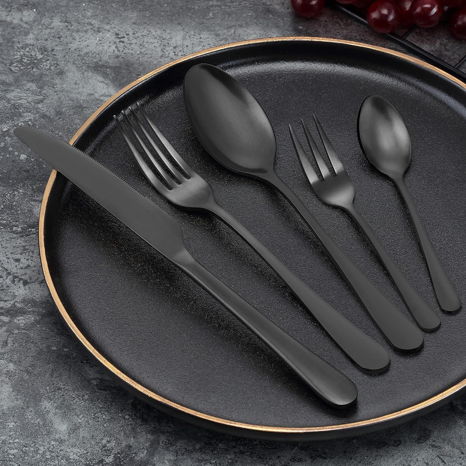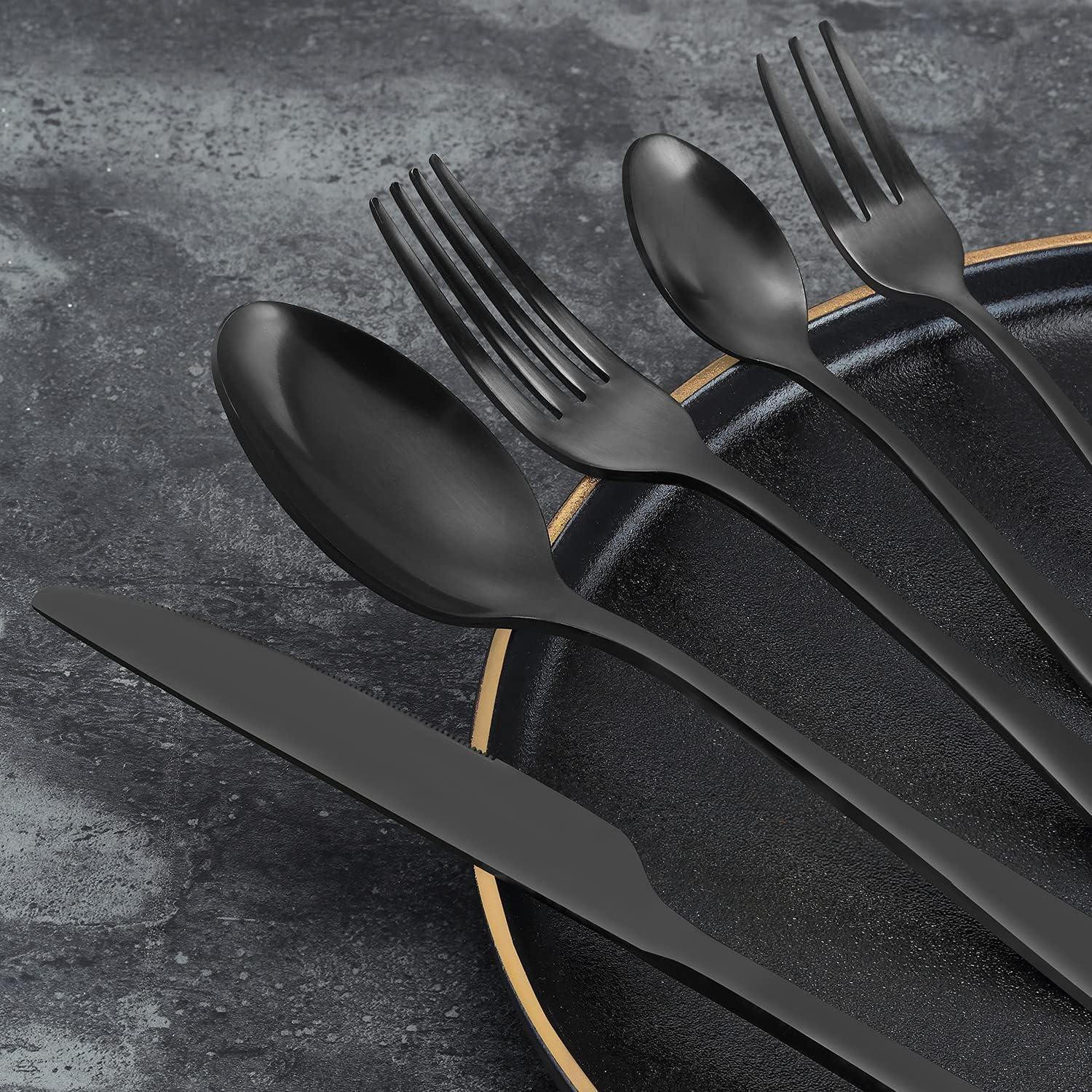 Besteck Set für 6 Personen, 30 teilig Schwarz Mattiert Essbesteck Set inkl. Messer, Gabel, Löffel, Besteck Edelstahl, Spülmaschinenfest