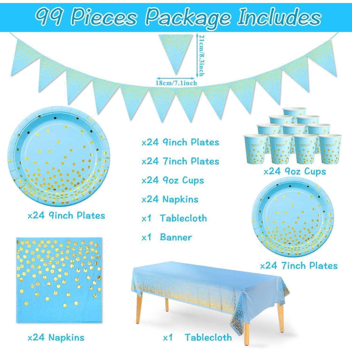 Blau Gold Partygeschirr Set 99 Stück Pappteller Servietten
