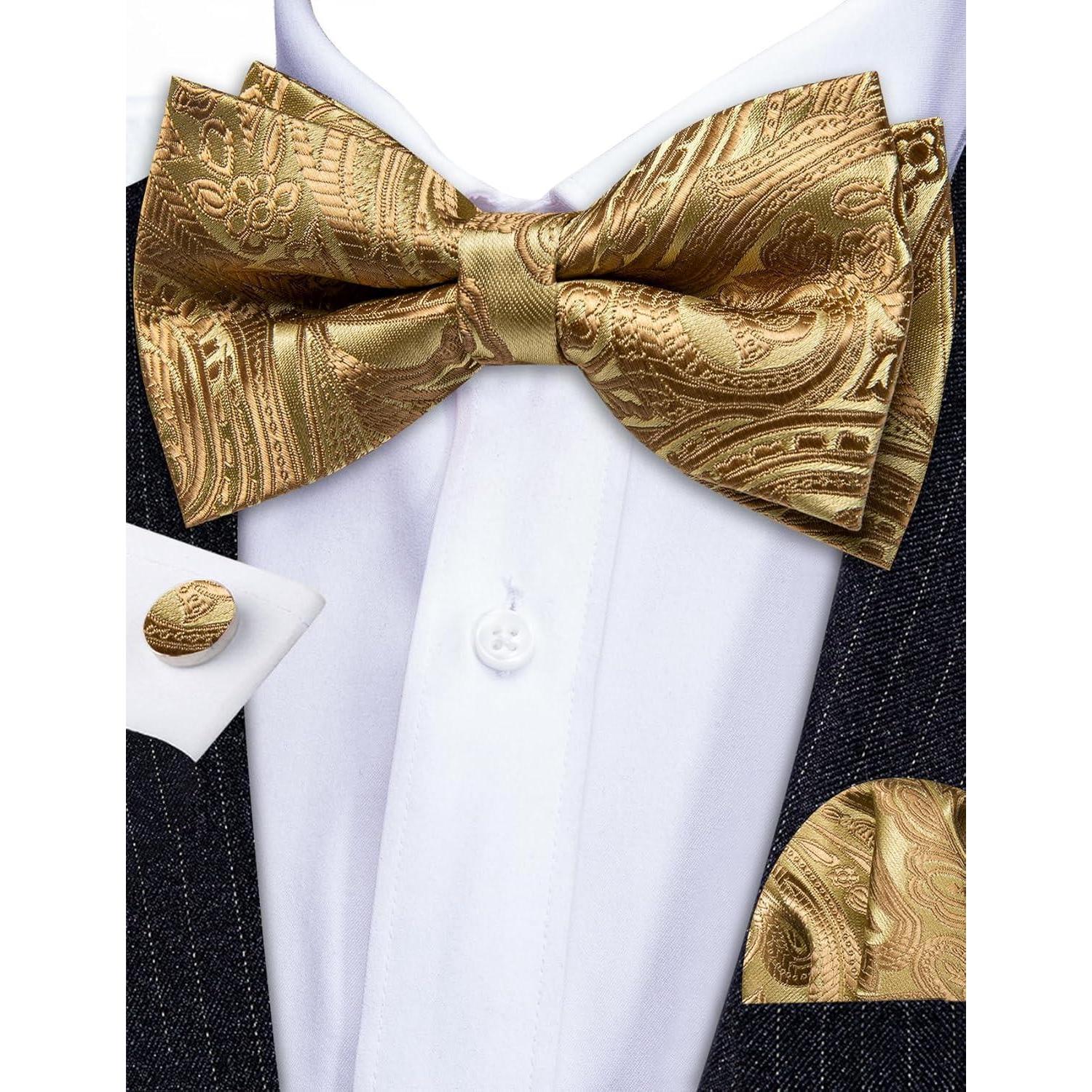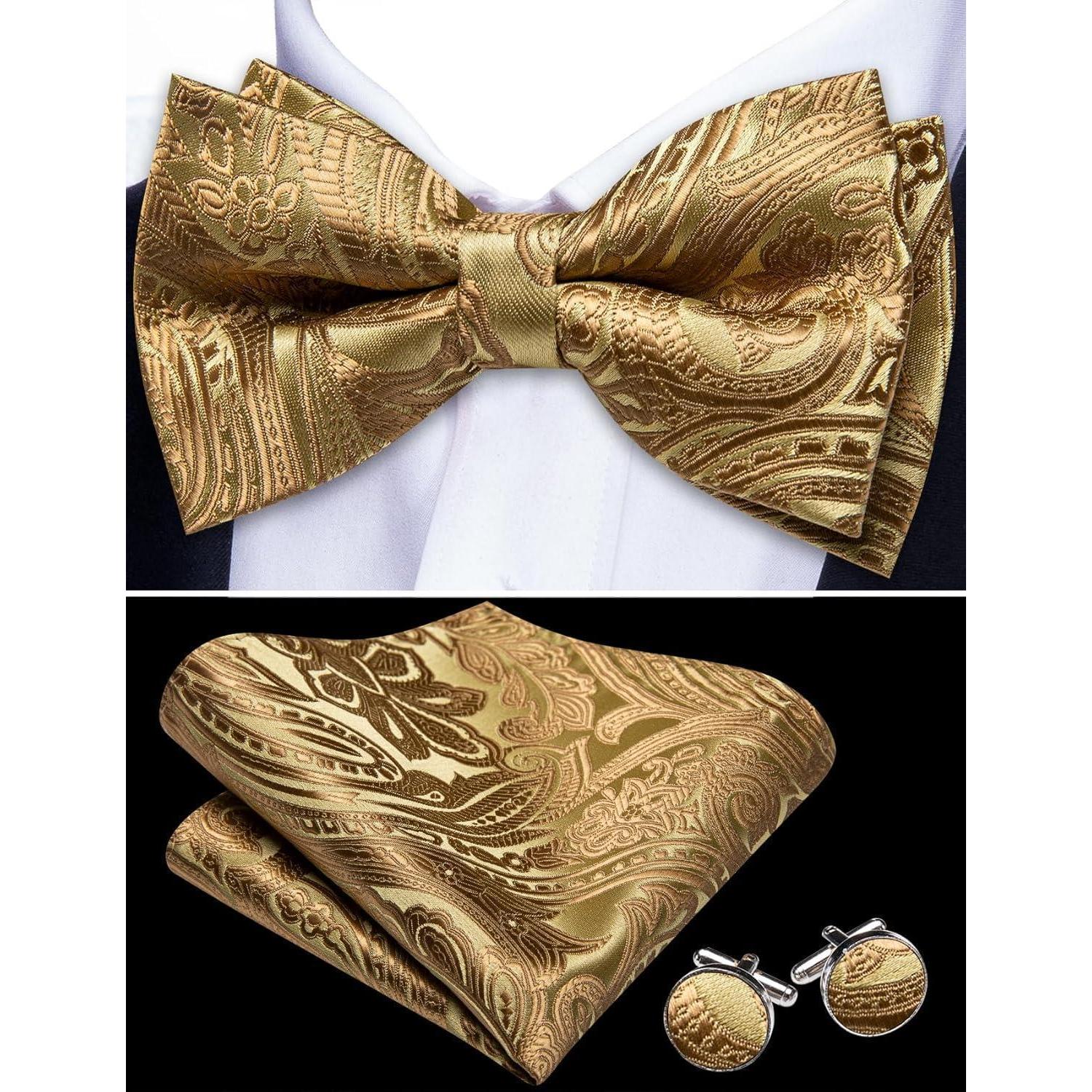 Blau Paisley Satin Fliegen Set mit Einstecktuch und