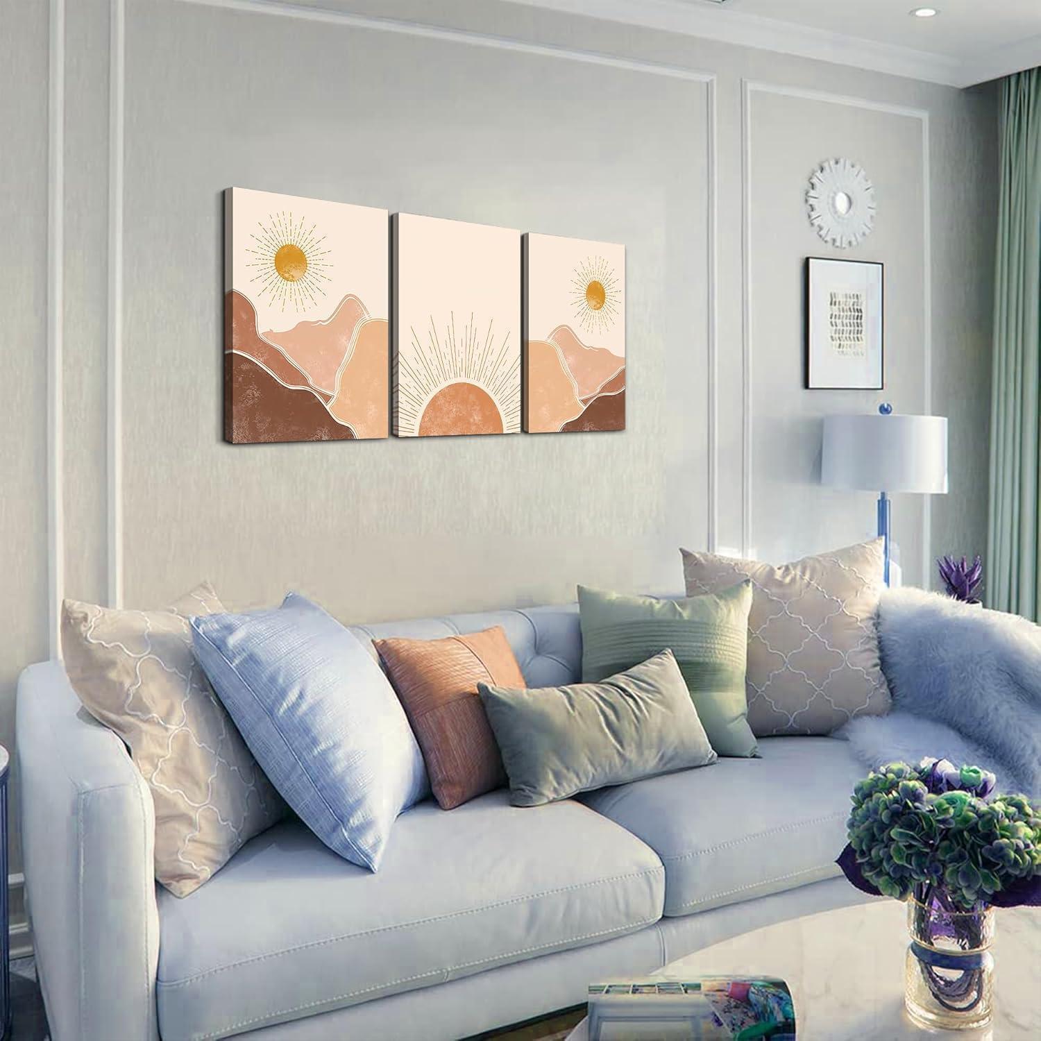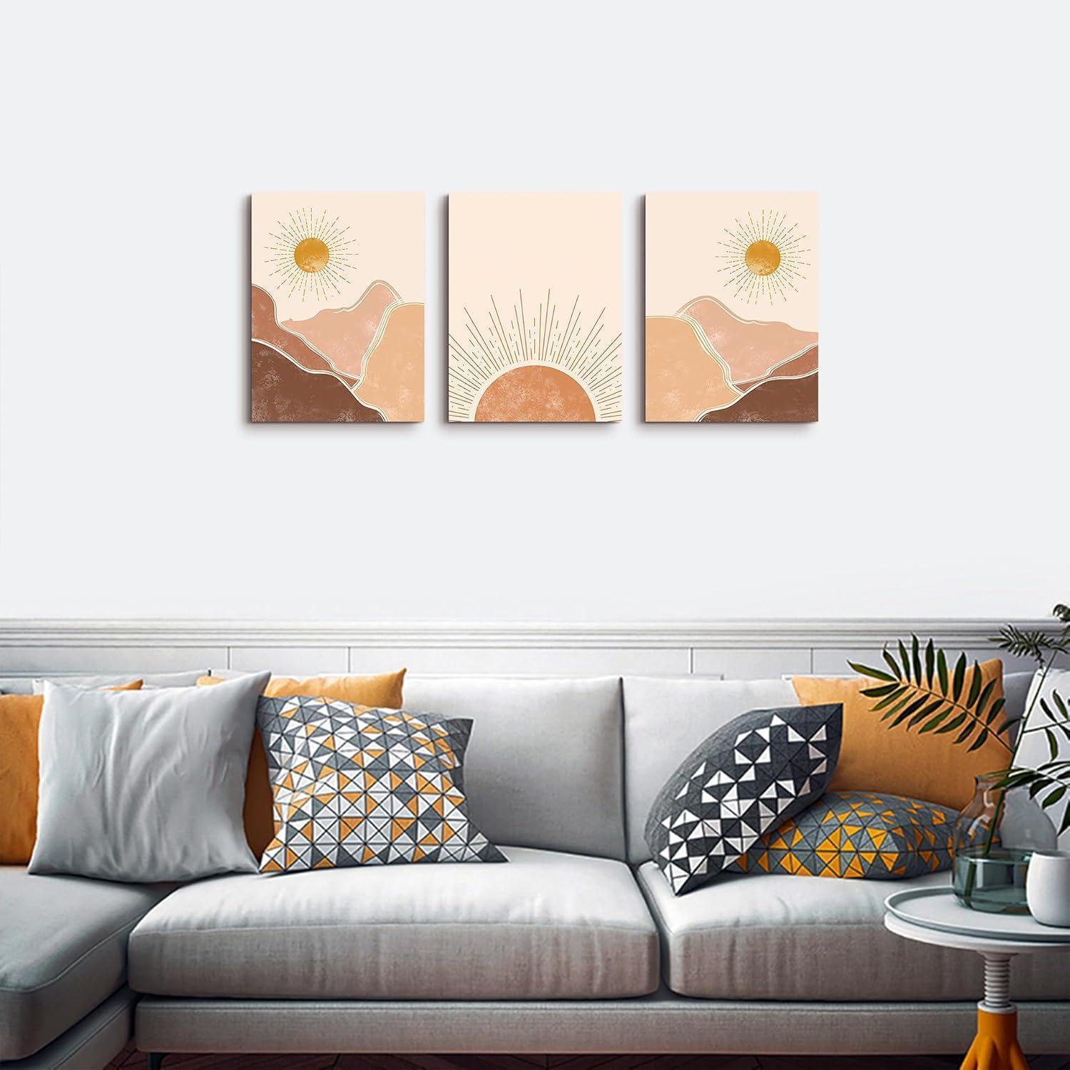 Das MHARTK66 Boho Bilder Orange Wandbild bringt eine modern-minimalistische Ästhetik in Ihr Zuhause. Die abstrakten Berge und die Sonne während des Sonnenaufgangs schaffen eine beruhigende Atmosphäre in jedem Raum. Dieses Leinwandbild eignet sich perfekt für die Dekoration Ihres Wohnzimmers, Schlafzimmers, Büros, der Küche, des Esszimmers, des Badezimmers oder sogar eines Gästezimmers.