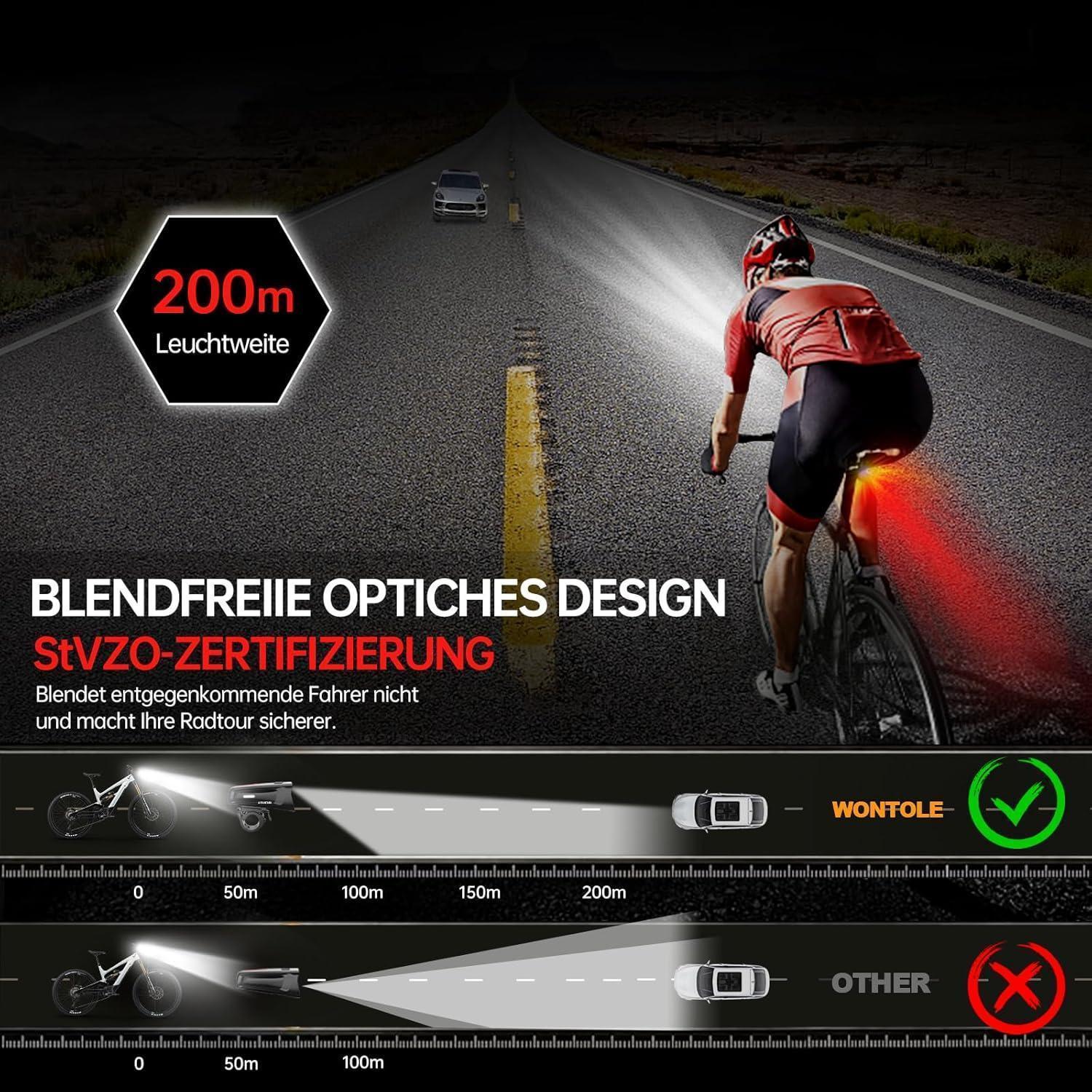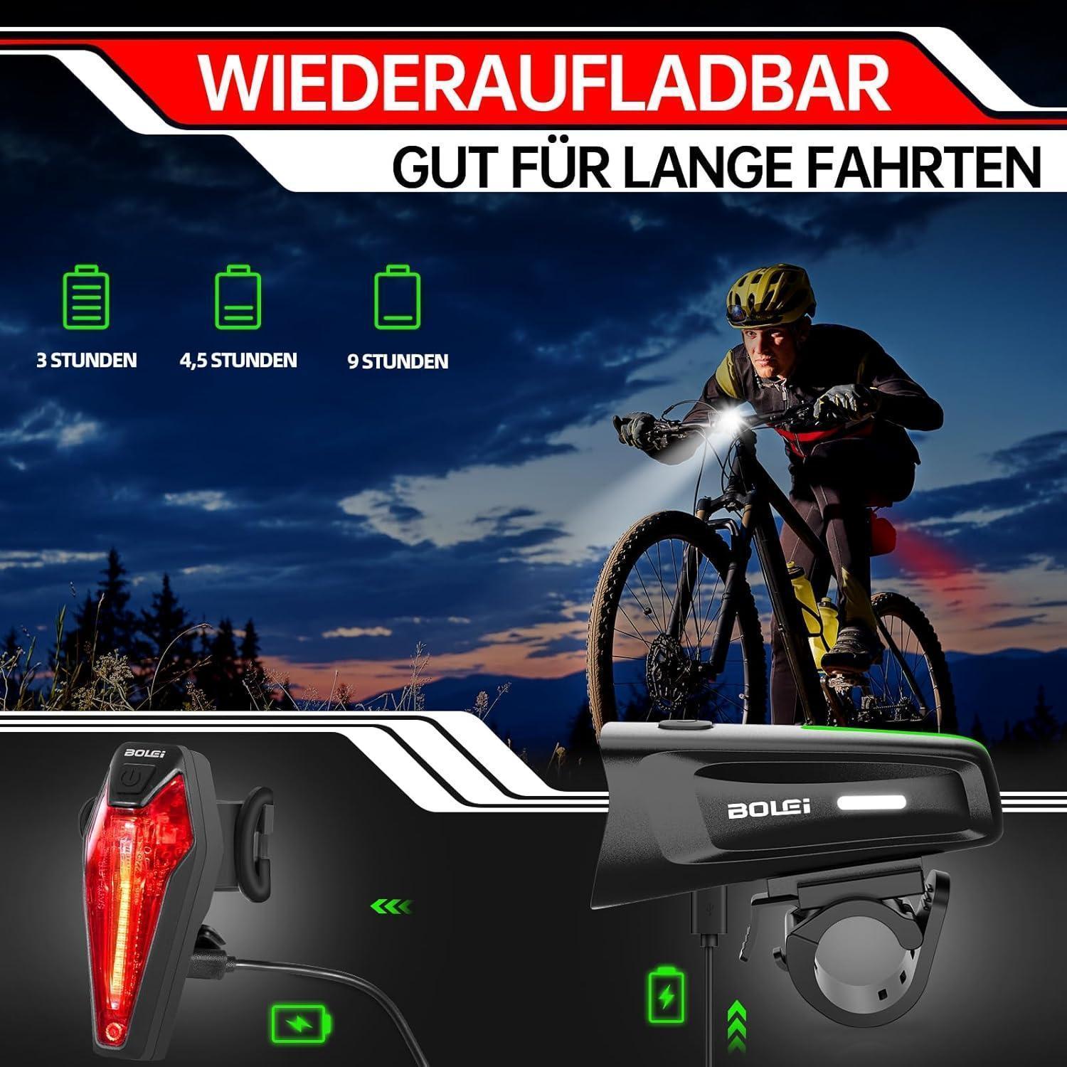 BOLEi LED Fahrradlicht Set 100 LUX StVZO zugelassen USB