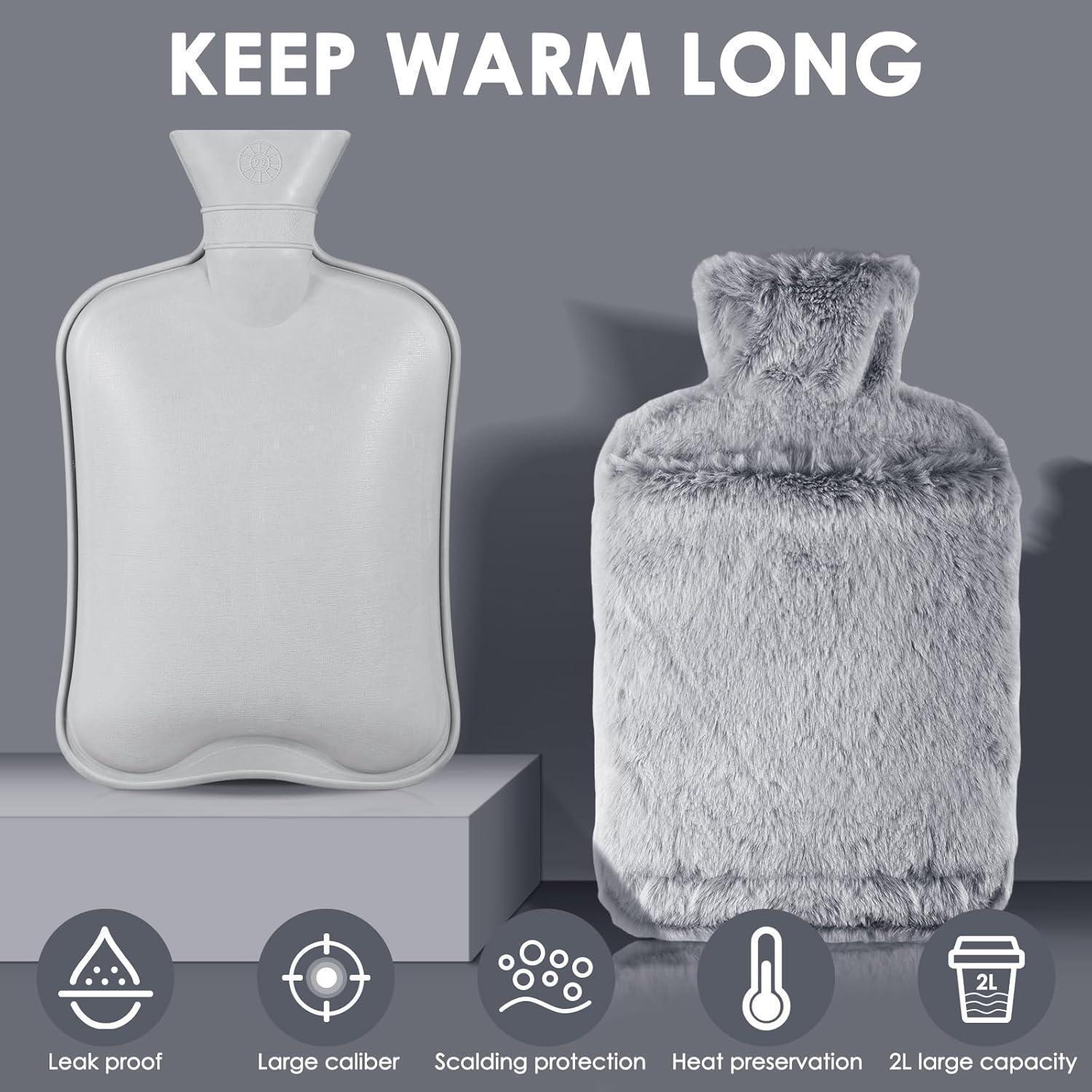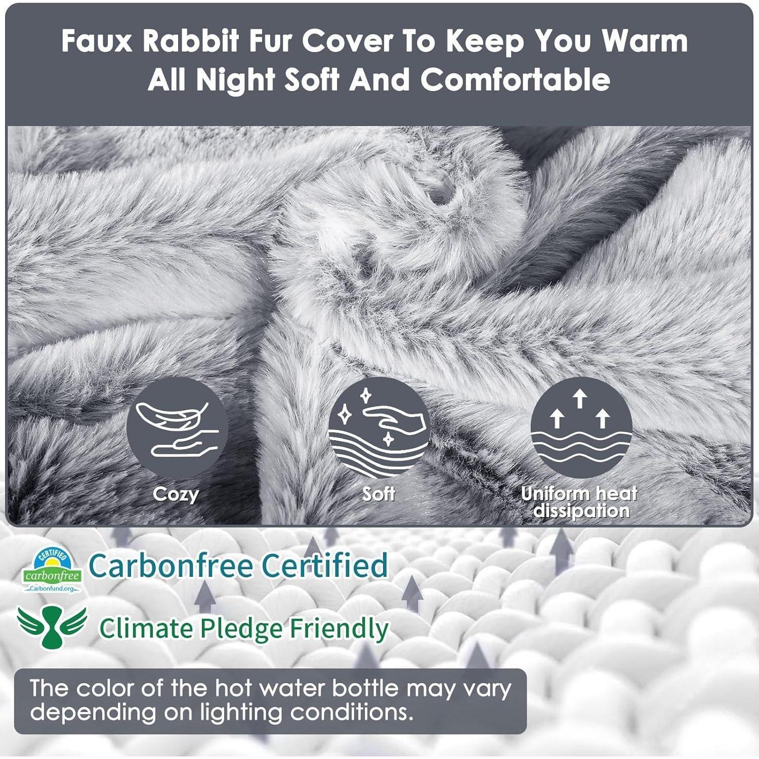 Dank des extra großen Fassungsvermögens von 2 Litern und dem flauschigen Bezug können Sie sich lange an der angenehmen Wärme erfreuen. Der weiche künstliche Kaninchenfellbezug sorgt nicht nur für ein tolles Hautgefühl, sondern verteilt die Wärme auch gleichmäßig, um Überhitzung zu vermeiden.