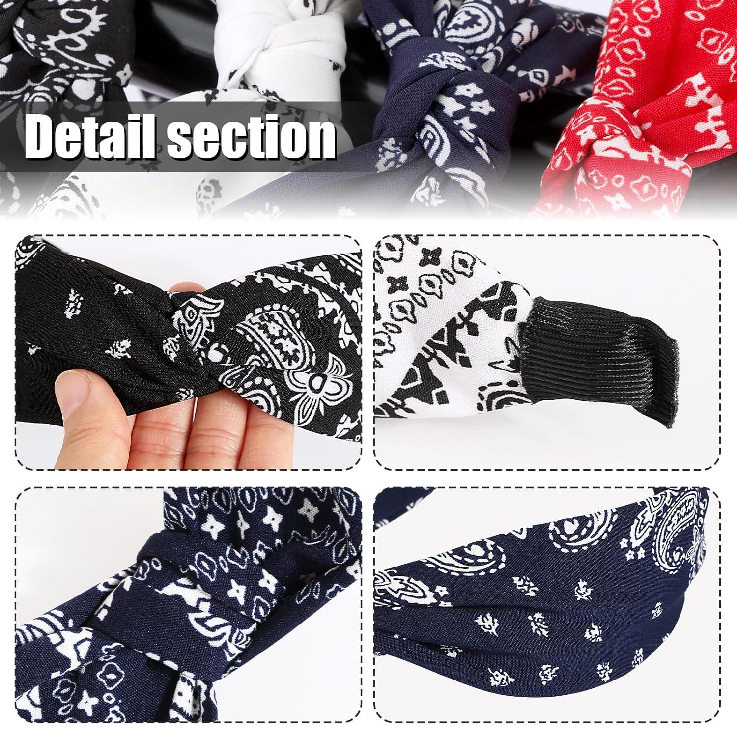 BOOMTOP 4er Set Breite Haarreifen Damen Vintage Paisley Stirnband Knoten Rot
