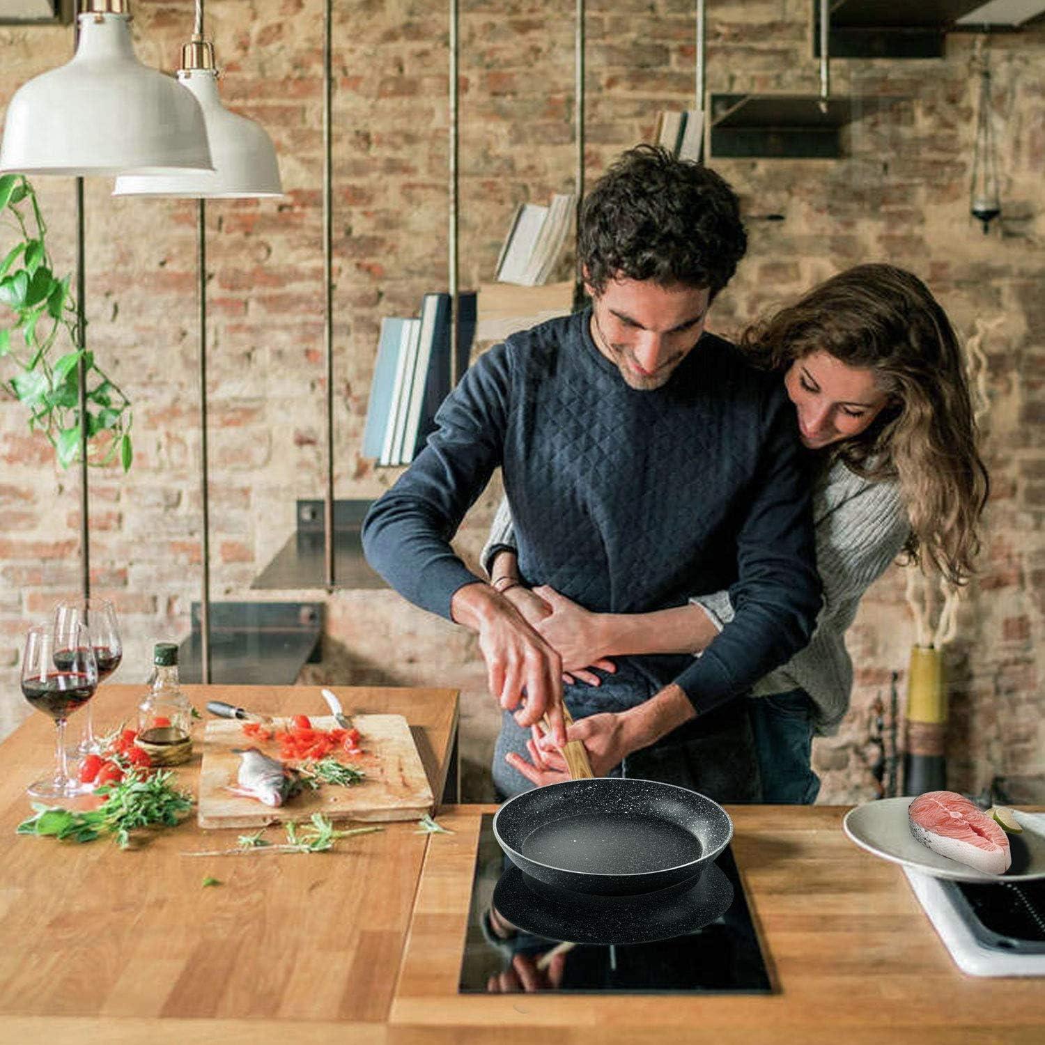 Bratpfanne 28cm mit Deckel, Antihaft Steinpfanne 28CM
