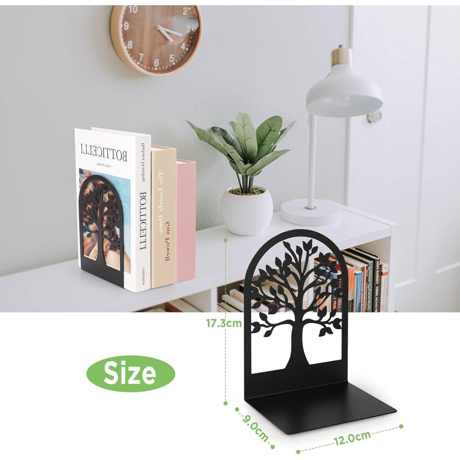 Jede Buchstütze hat die Maße 12 x 12 x 16,5 cm, was ausreichend Platz für Standard-Bücher, Fotoalben und andere Gegenstände bietet. Dank der rutschfesten Schaumstoffpolster an der Unterseite bleiben die Bücher sicher an ihrem Platz.