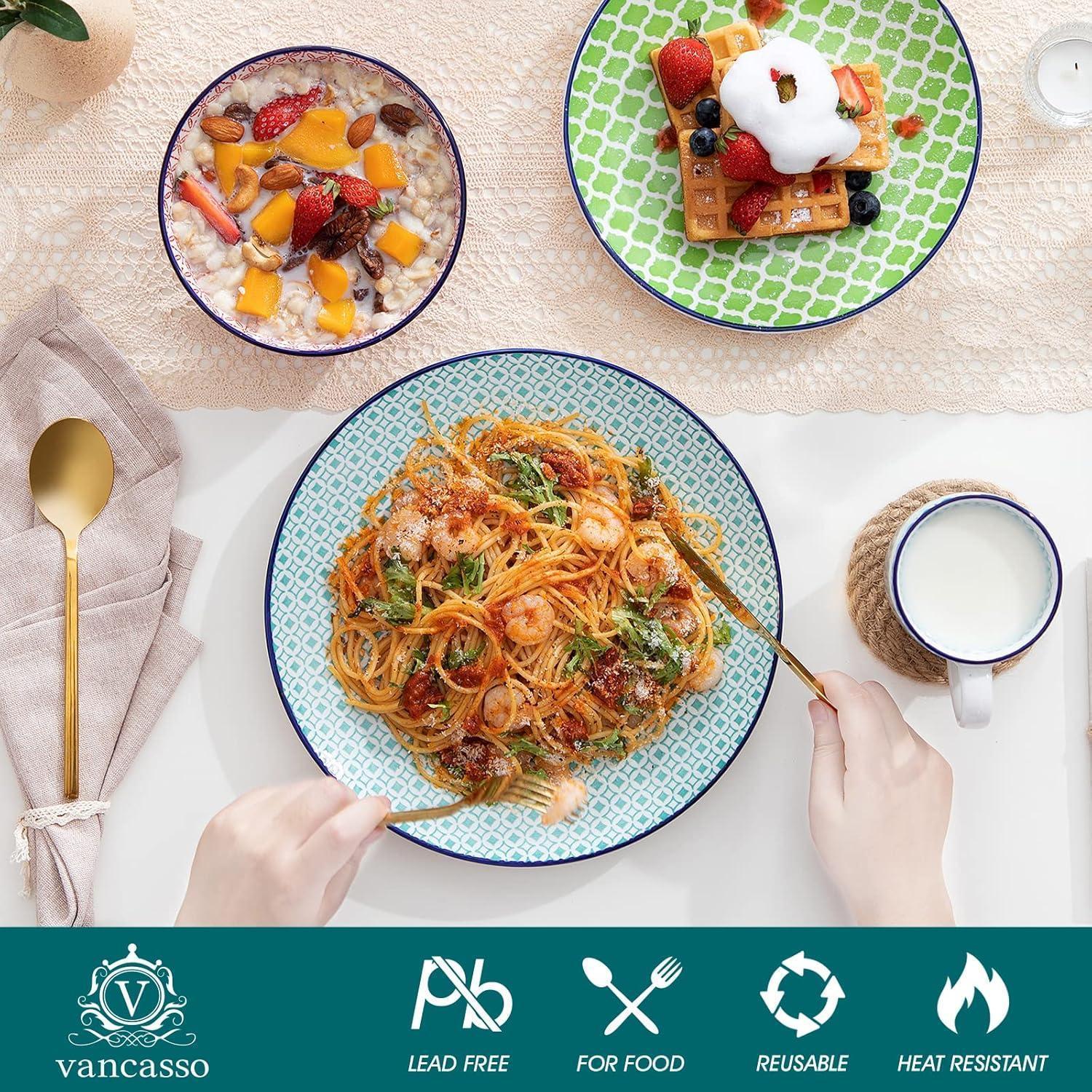 Als renommierter Hersteller bietet vancasso eine 1-jährige Garantie auf dieses Geschirrset. Der Kundendienst ist erstklassig und steht Ihnen bei Fragen oder Problemen zur Verfügung. Zusätzliche Ergänzungen zur Macaron Serie, wie kleine Dipschalen, Kuchenteller und Suppenteller, sind ebenfalls erhältlich.