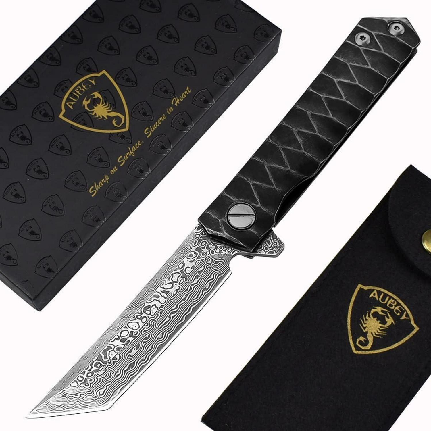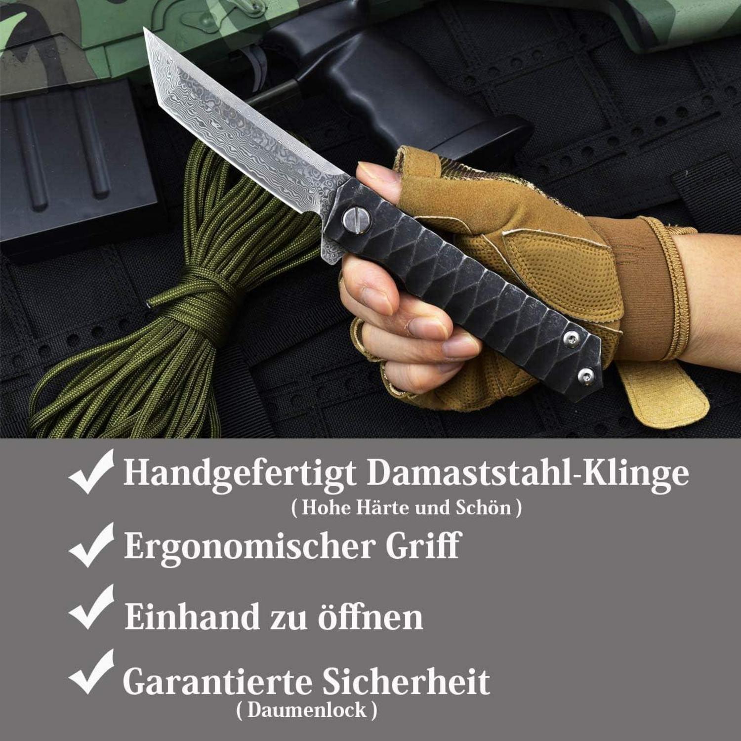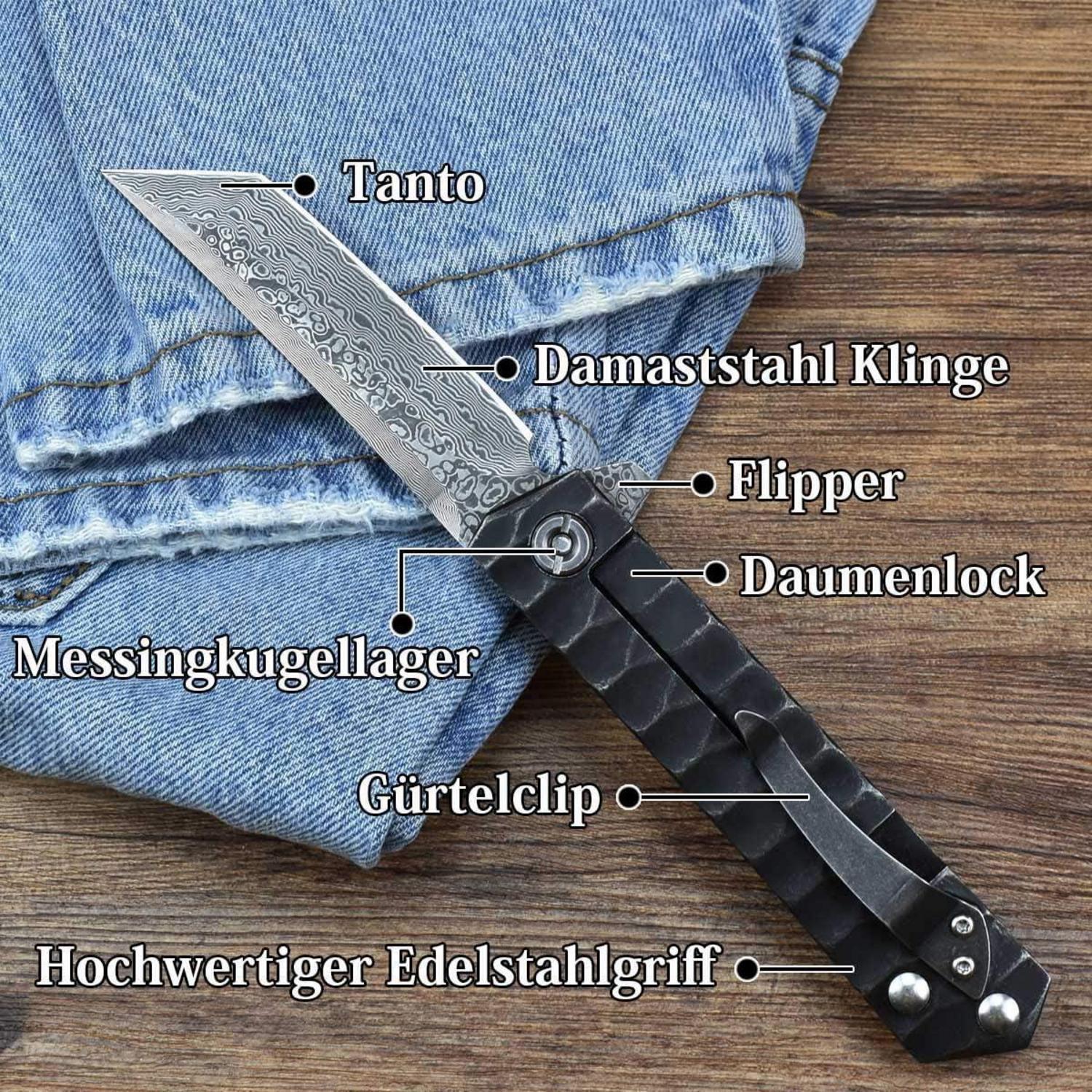Damast Taschenmesser Tanto Messer Klappmesser Einhandmesser