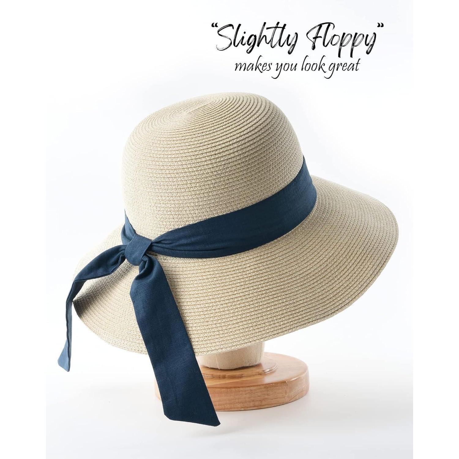 Damen Sonnenhut Strohhut UV Schutz UPF 50+ M-L Breite Krempe