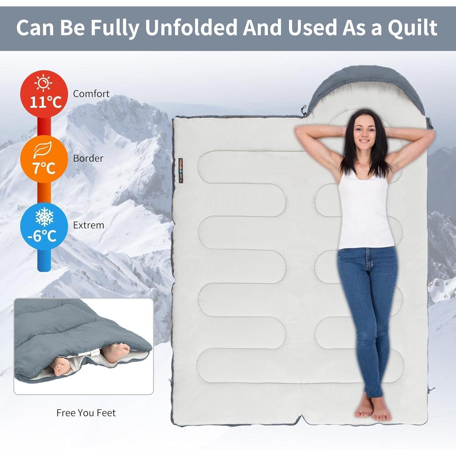 Ein besonderes Highlight ist das Design, das es ermöglicht, zwei Schlafsäcke miteinander zu verbinden, um einen Doppelschlafsack zu schaffen. So können Sie und Ihre Lieben die Natur gemeinsam genießen, egal ob beim Camping oder im eigenen Garten.