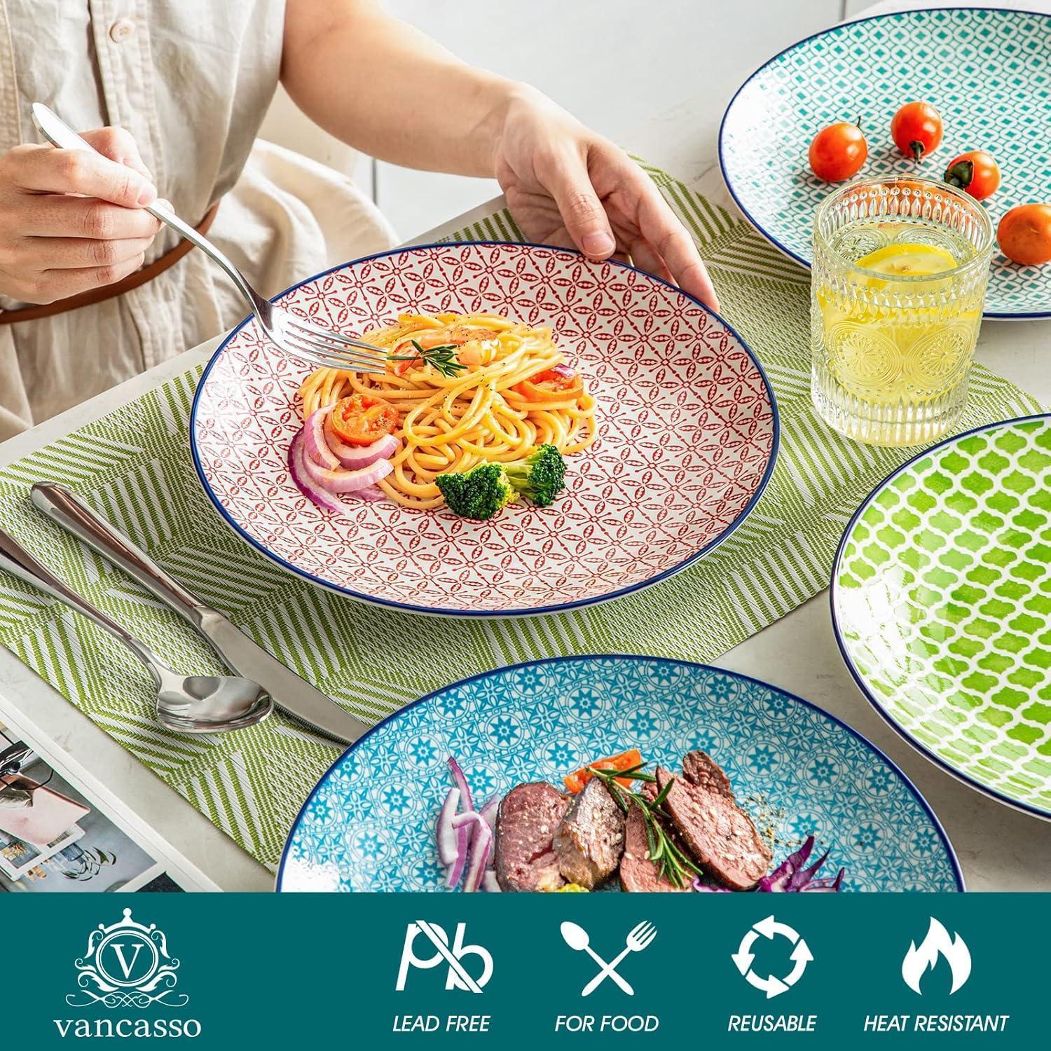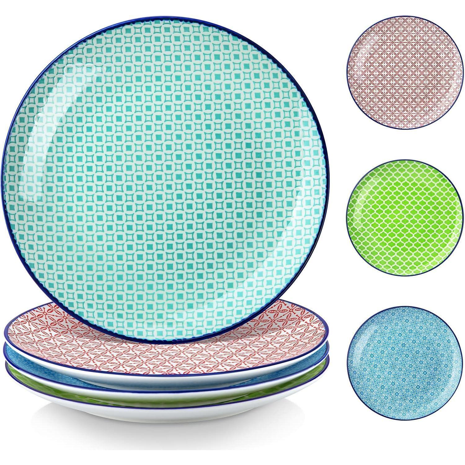Mit einer Größe von 21,5 x 21,5 x 2,5 cm sind die Kuchenteller sowohl praktisch als auch dekorativ. Jedes Set enthält vier unterschiedliche Farben und Muster, die für Abwechslung auf dem gedeckten Tisch sorgen. Das vancasso Desserteller Set wird sicher und fest verpackt geliefert, um Beschädigungen während des Transports zu vermeiden.