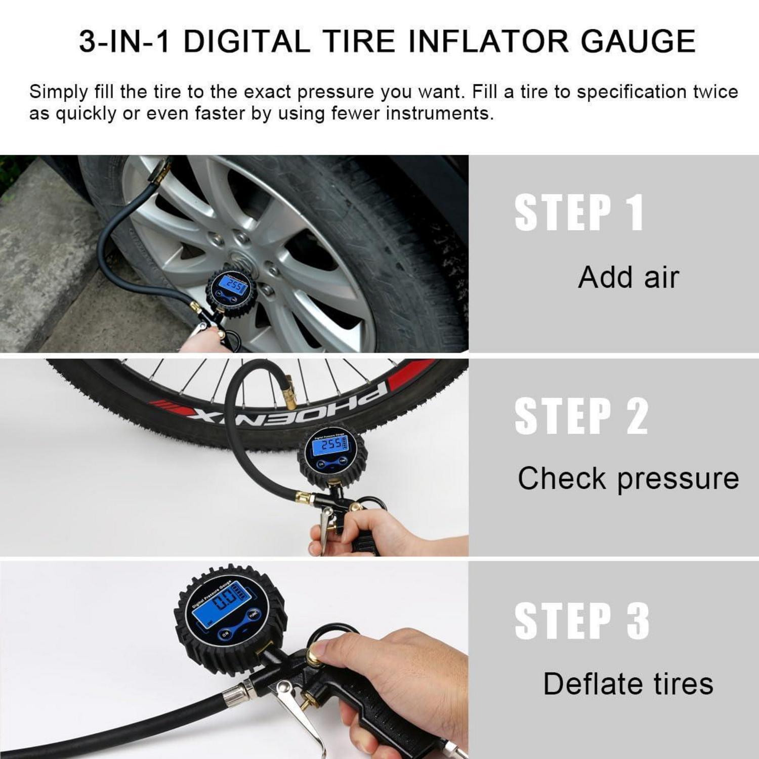 Digitales Reifenfüllgerät 220PSI mit Zubehör - LCD-Display