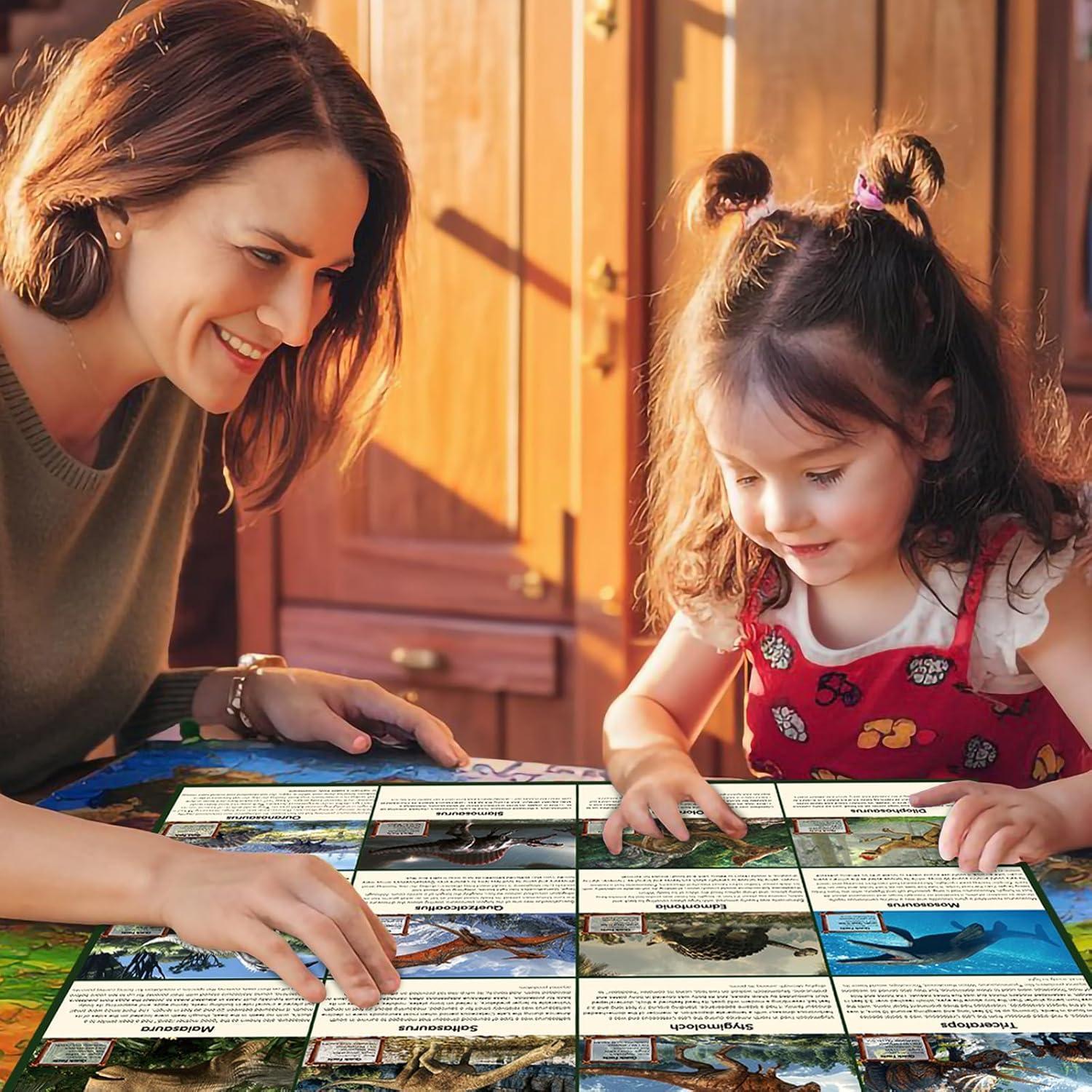 BILDUNGSSPAß: Jede Dinosaurierfigur wird von einem kleinen Informationstext begleitet, der auf der Rückseite der Fluchtkarte gedruckt ist. Während die Kinder die Karte erkunden, entdecken sie faszinierende Fakten über jede Art.