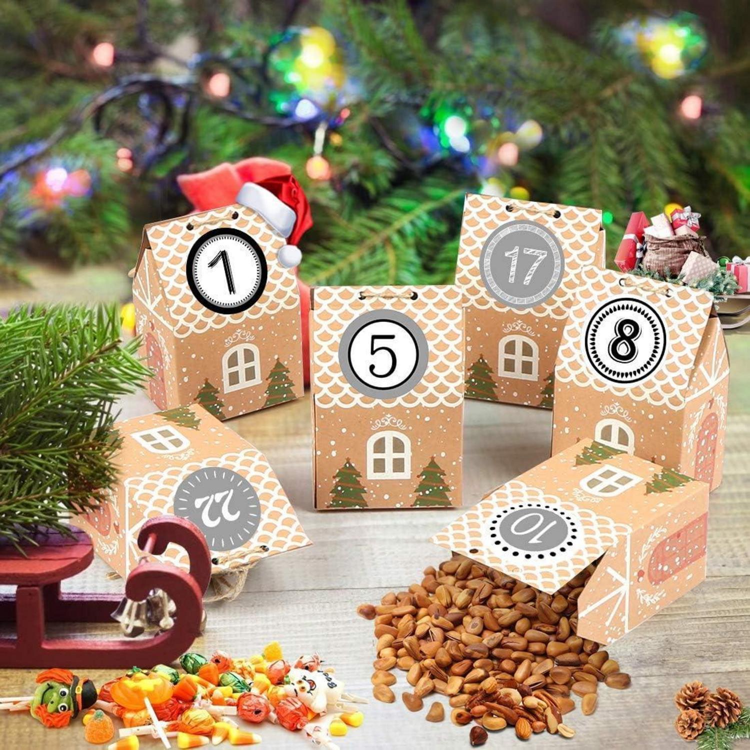 Die Adventskalender Boxen sind aus hochwertigem Premium-Papier gefertigt, robust und langlebig, sodass sie wiederverwendbar sind. In Form von süßen Häuschen gestaltet, werden sie nicht nur Kinder, sondern auch Erwachsene ansprechen. Jedes Haus hat die Maße 7 x 5 x 10,5 cm und wird mit 24 zahlenbasierten Aufklebern geliefert, um die Tage bis Weihnachten zu zählen.
