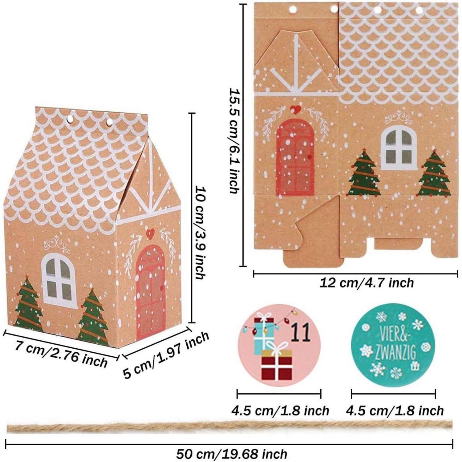 ???? Einzigartiges Design: Unsere Papiertüten für die Weihnachtsfeier bestehen aus hochwertigem Kraftpapier, sind umweltfreundlich und recycelbar, sicher und langlebig. Es sieht aus wie ein kleines Haus, sehr attraktiv, geeignet zum Füllen von Süßigkeiten und Kunsthandwerk. DIY-Adventskalender.
