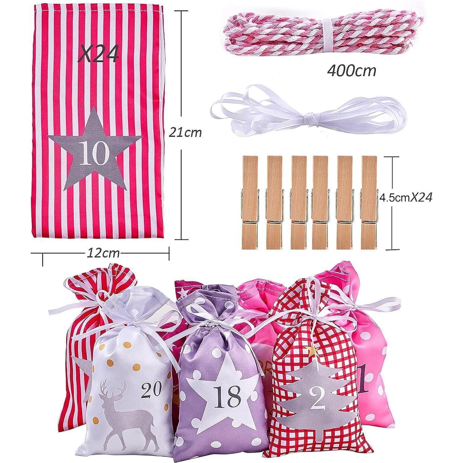 Reichhaltiges Paket - DIY-Adventskalender mit GRÖßER weihnachtssäckchen 12x21cm.