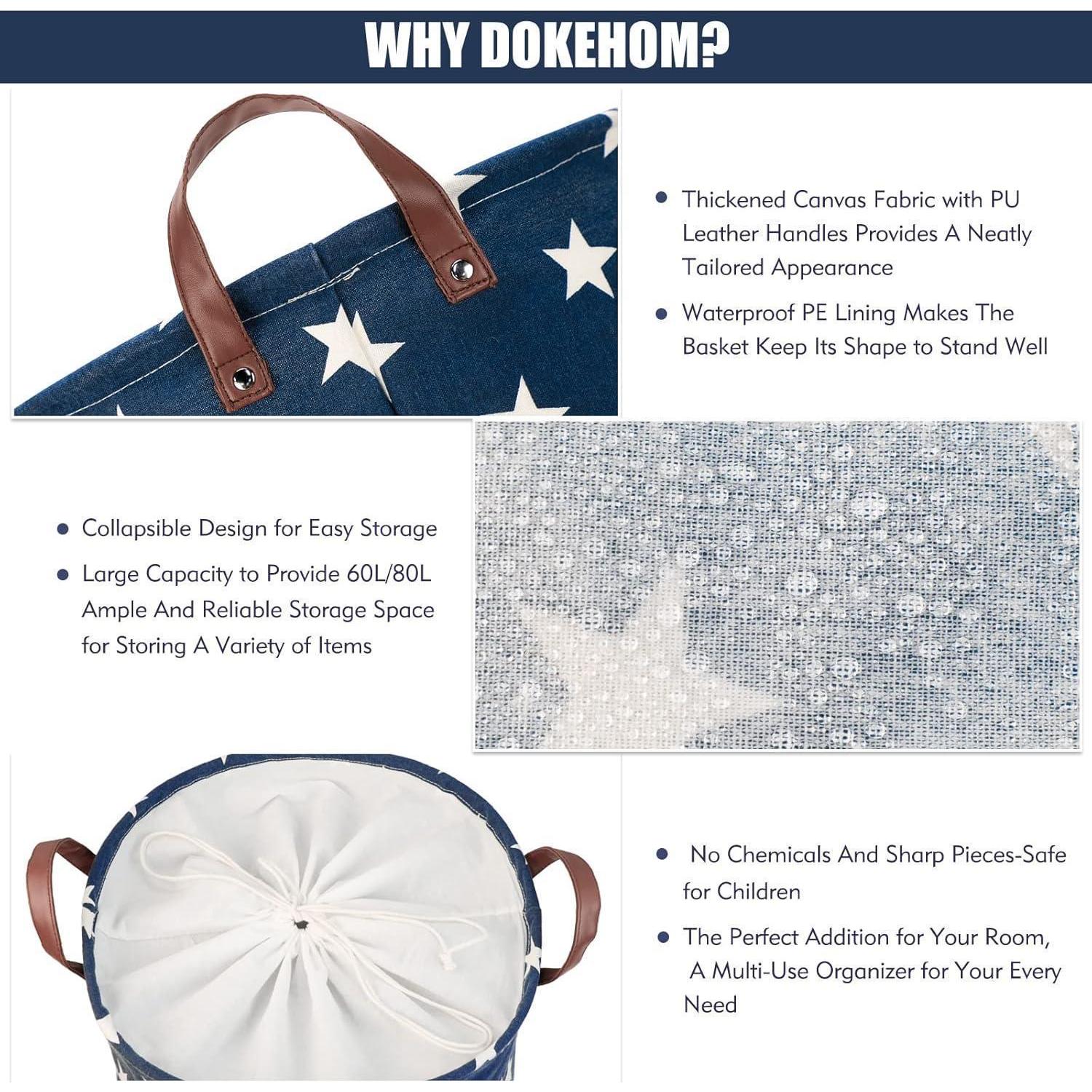 DOKEHOM 20-Inch Baumwolle Runde Wäschekorb Lagerung (Blau