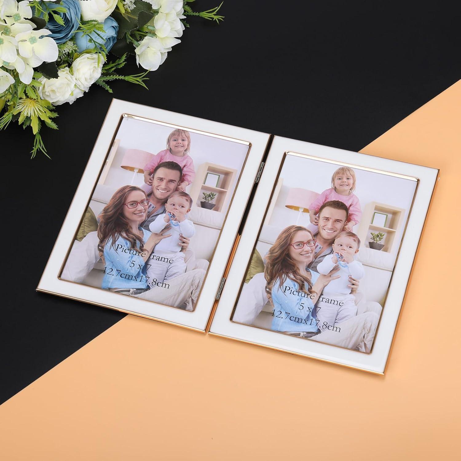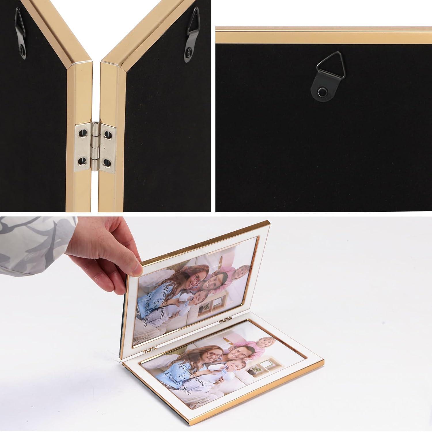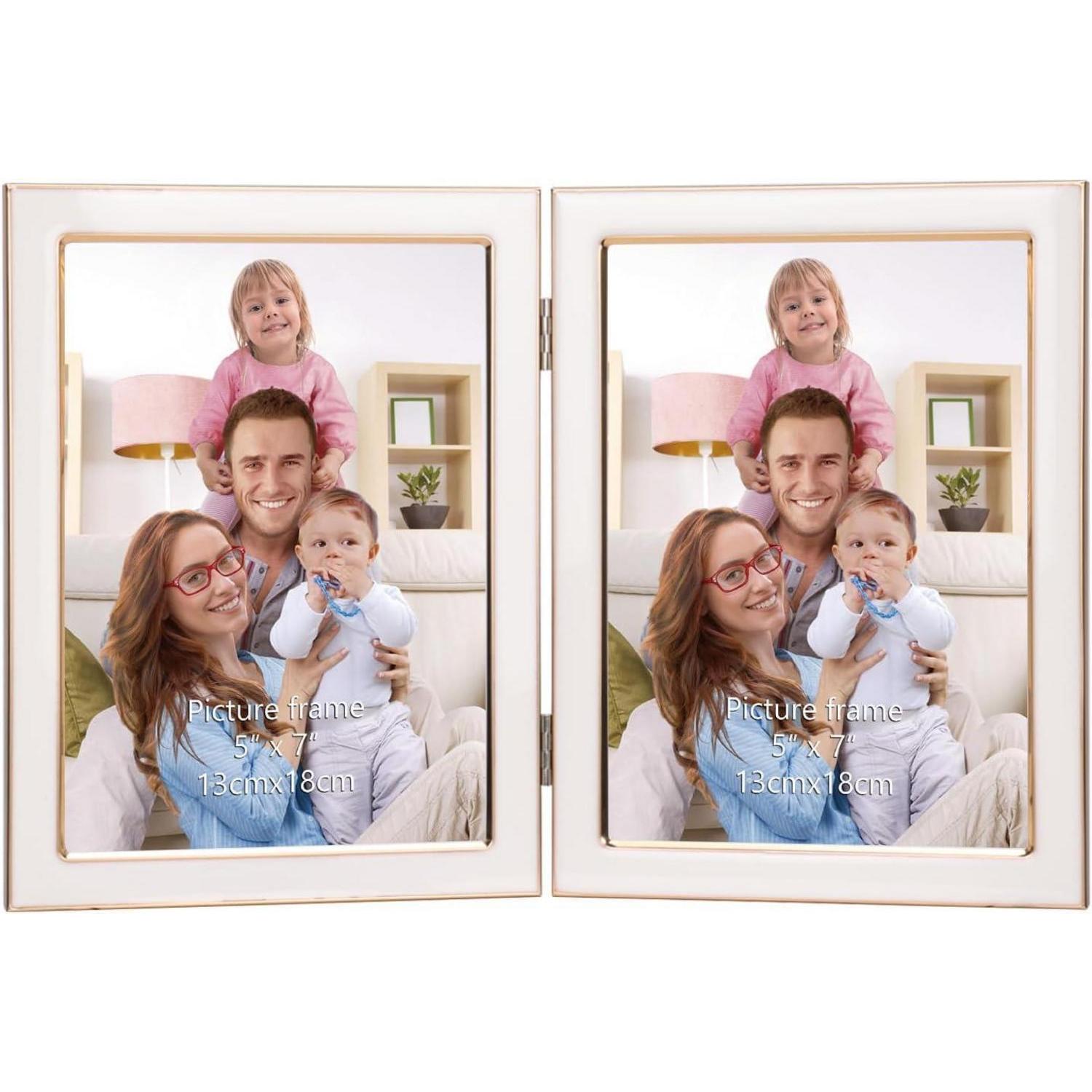Doppelter Bilderrahmen 13x18cm Weiß Goldener Metallrahmen