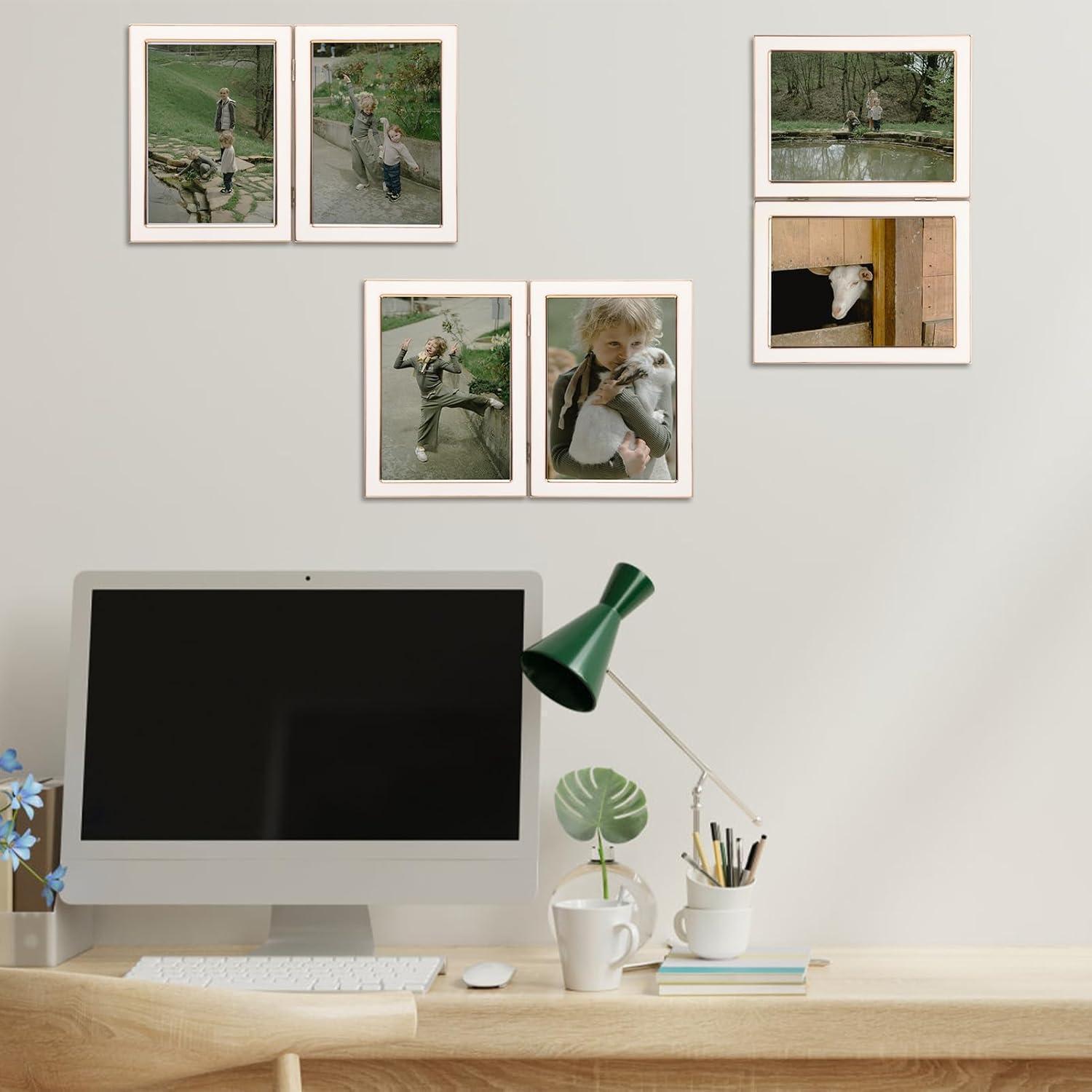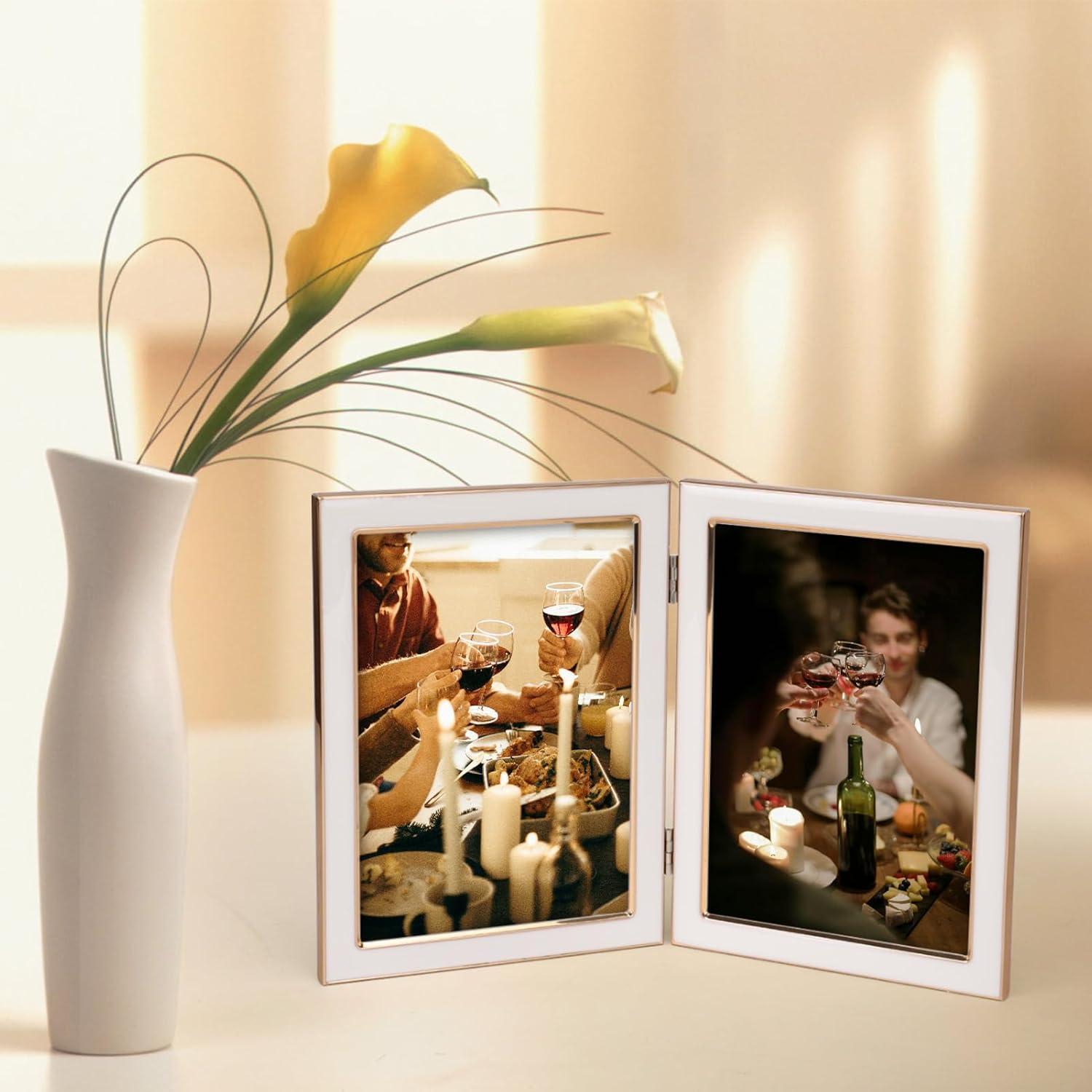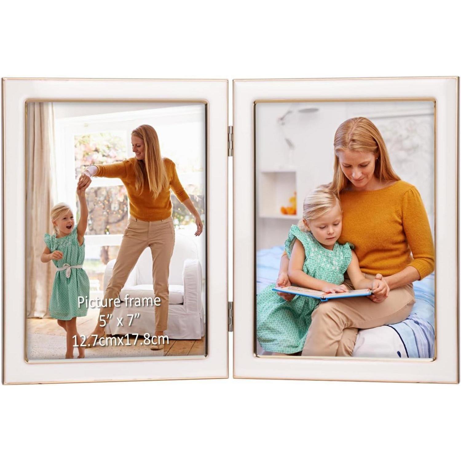 Doppelter Bilderrahmen 13x18cm Weiß Goldener Metallrahmen