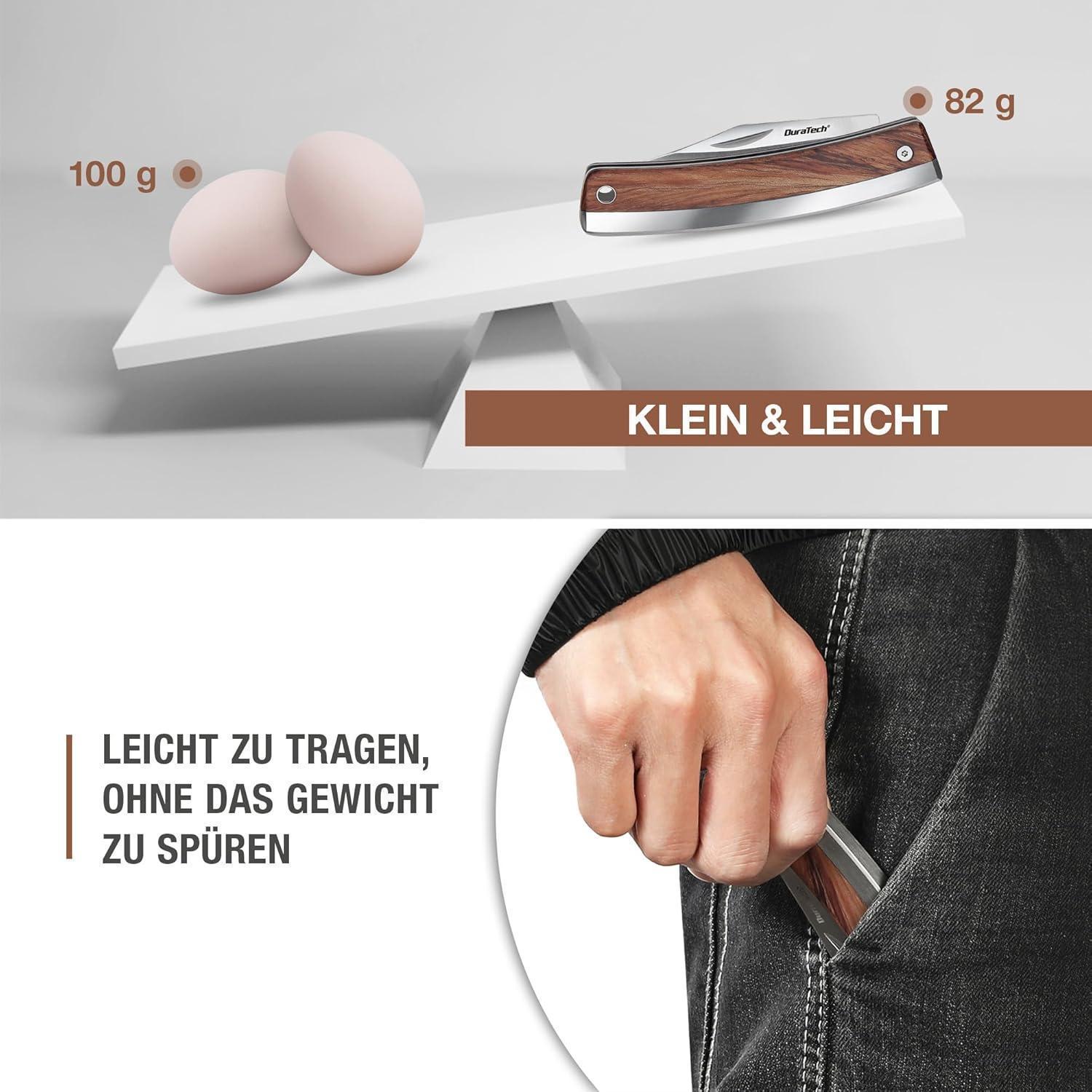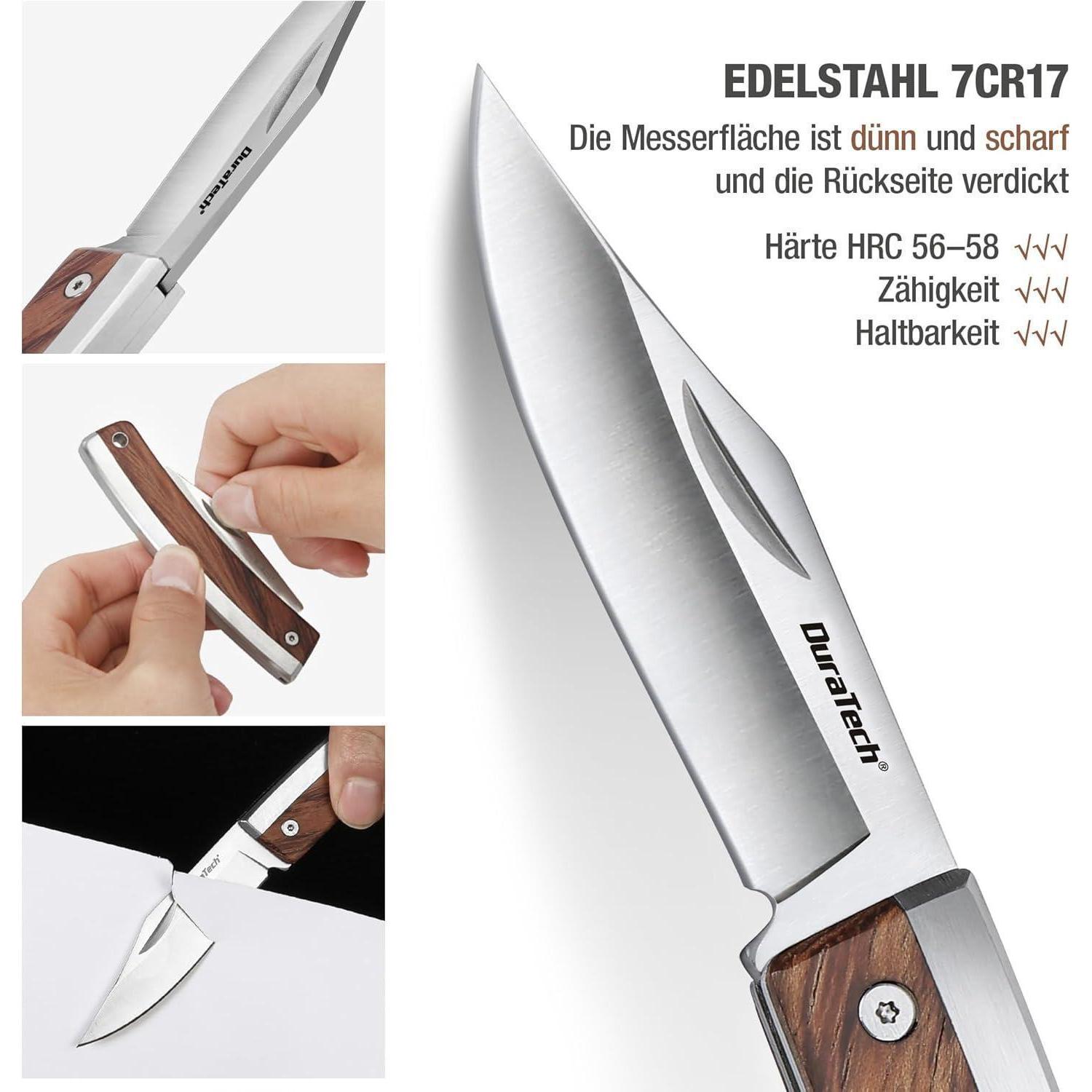 DURATECH Klappmesser Holzgriff 170mm Edelstahl Einhandmesser
