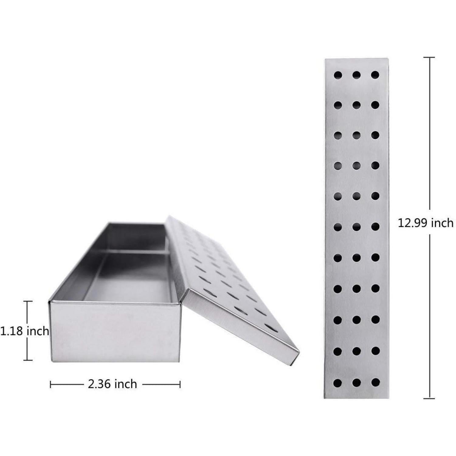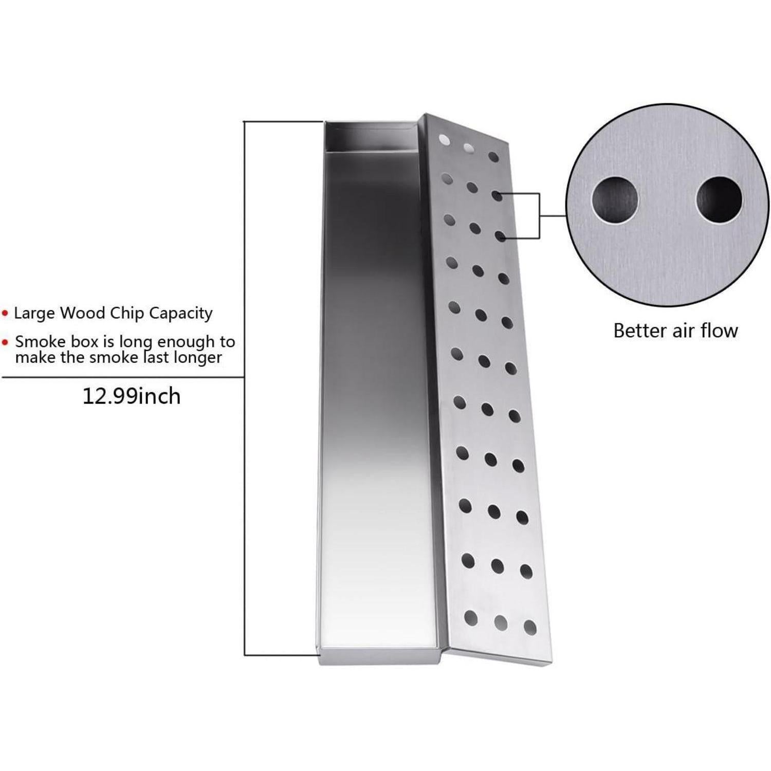 Sparen Sie Platz und genug Kapazität - 33 × 6 × 3 cm. Unsere Rauchbox ist lang genug, um nicht nur Platz auf dem Grill zu sparen, sondern auch den Rauch länger und gleichmäßiger zu halten. Es funktioniert für die meisten Grills (Alle Weber, Charbroil, Gas und Holzkohlegrills).