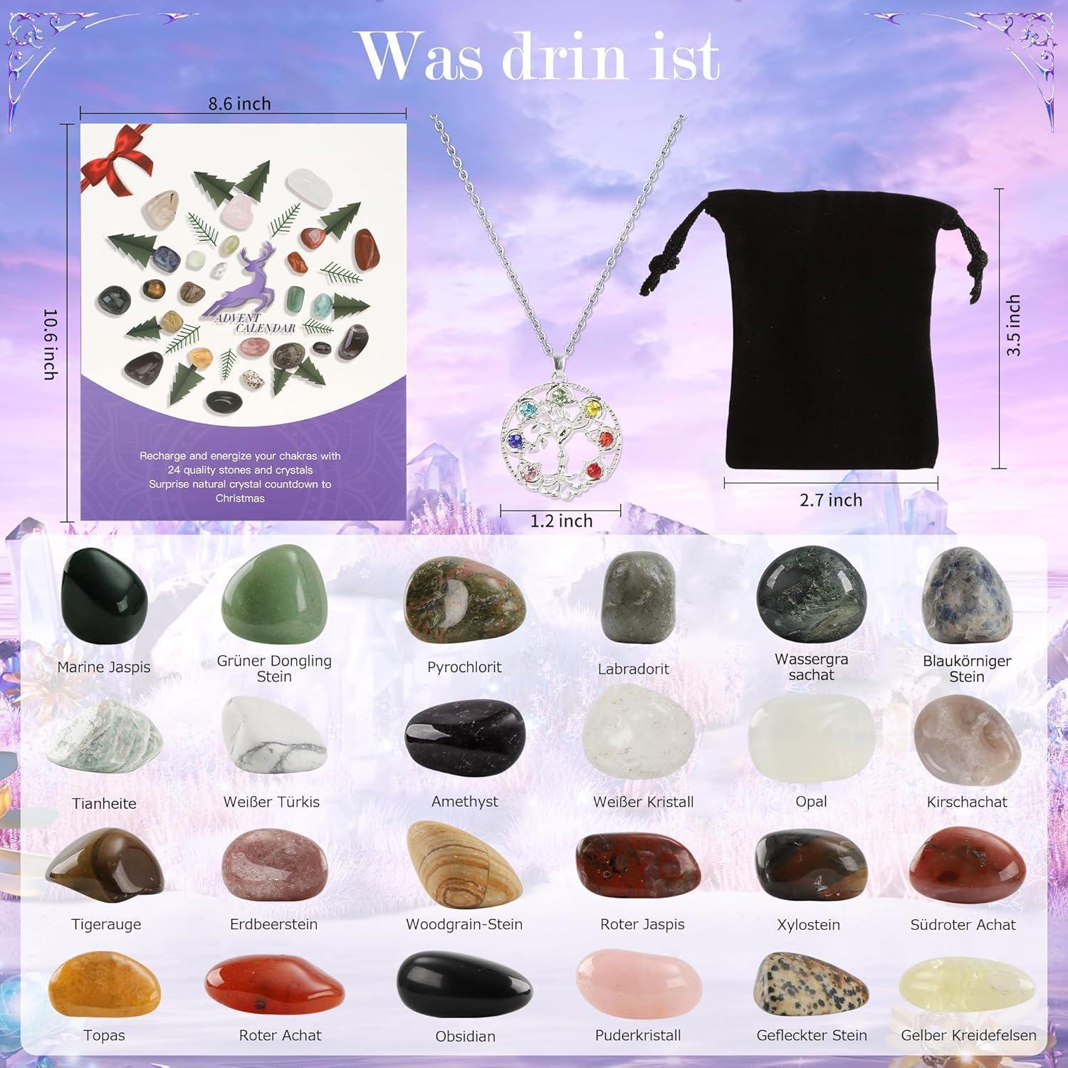 Machen Sie diesen Adventskalender Kristalle zu einem besonderen Weihnachts-Countdown-Geschenk, das den Zauber der Chakra-Steine und Heilkristalle mit ihr teilt und jeden Tag eine Vielzahl von Überraschungen aufdeckt. Ideales Weihnachtsgeschenk für Frauen, Mama, beste Freundinnen, Schwester, Ehefrau, Freundin oder jede Dame! Ideal für Meditation, Chakra-Heilung, Yoga, Reiki, spirituelle Praxis oder Heimdekoration.
