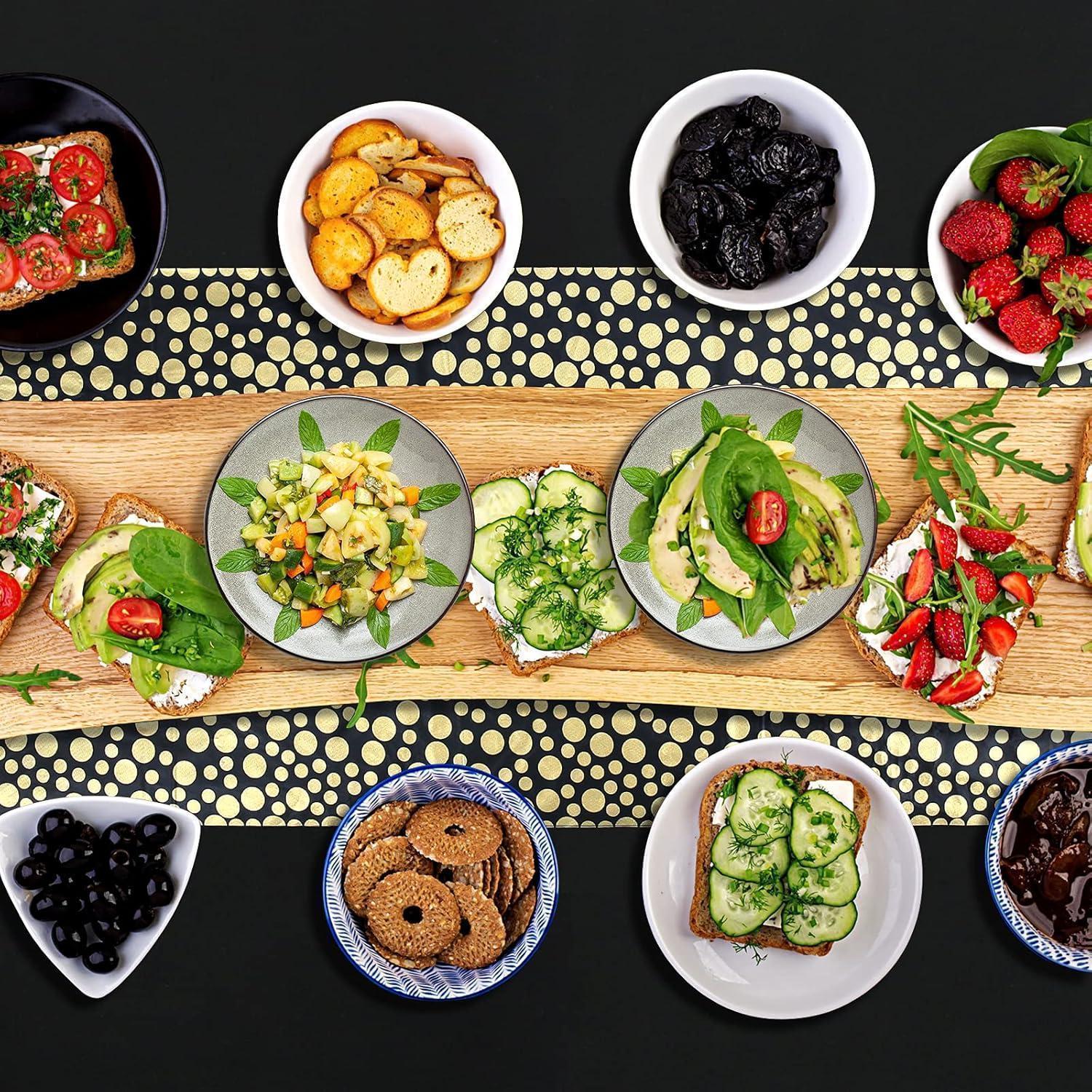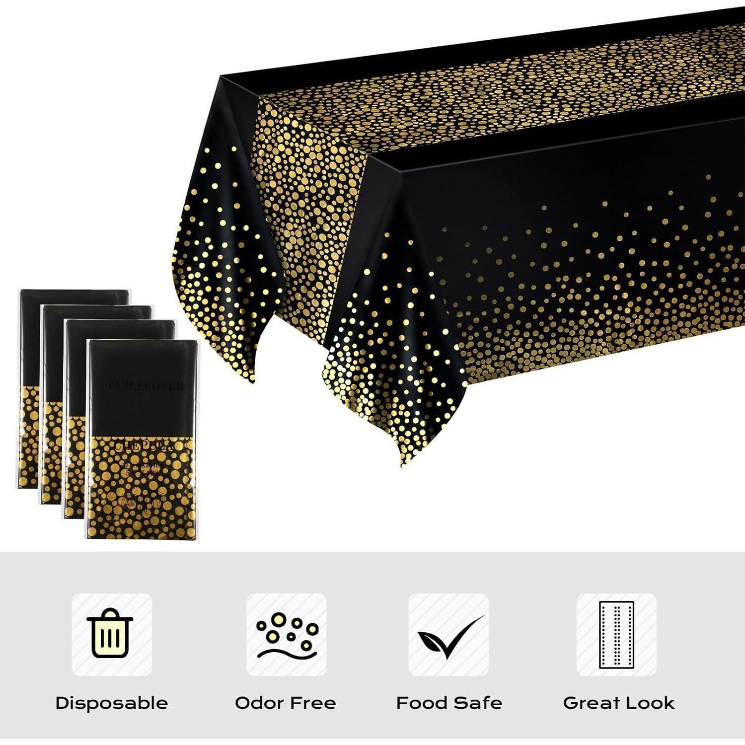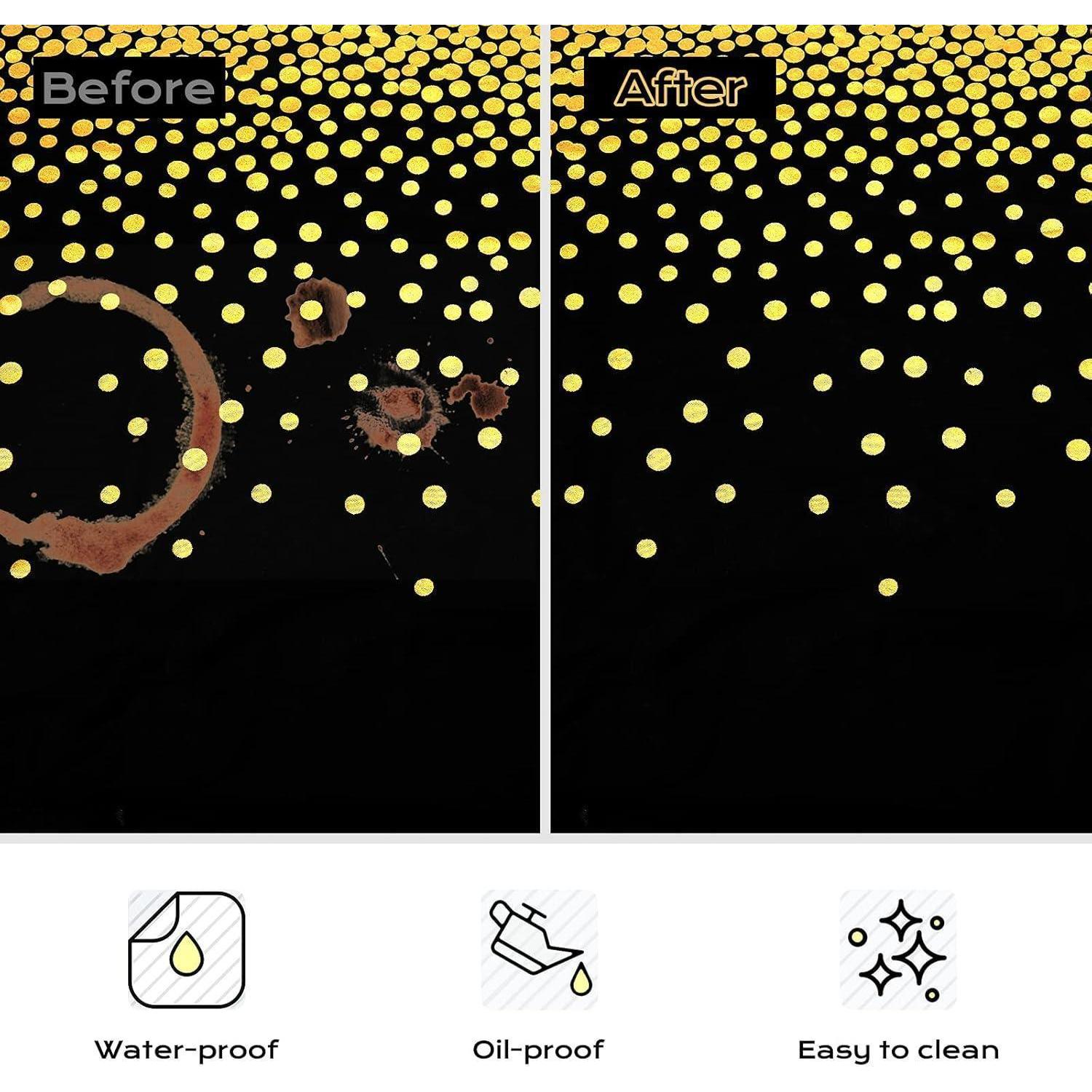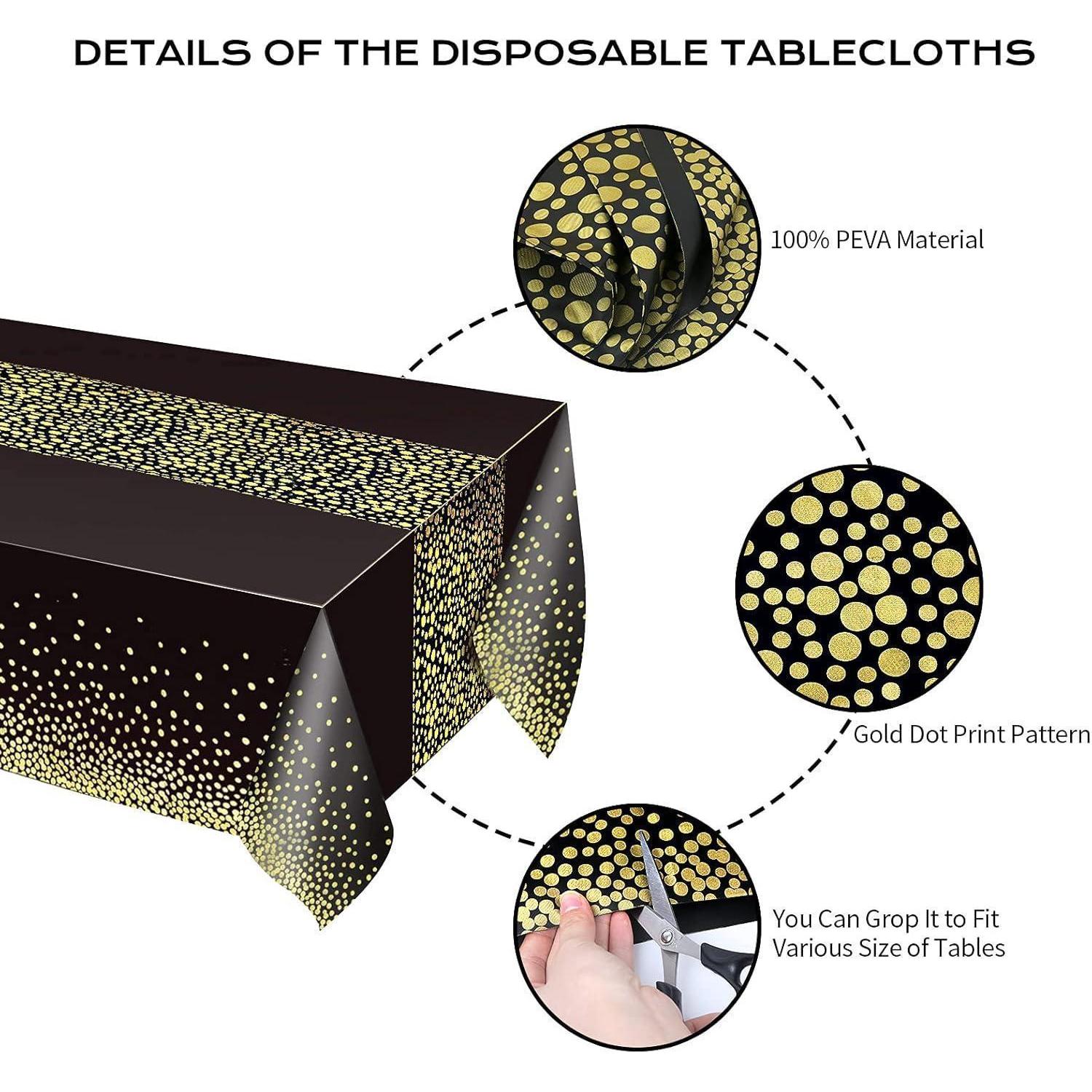 Das elegante Design mit den goldenen Punkten und dem Tischläufer Muster verleiht Ihrem Tisch eine ansprechende Optik und beeindruckt Ihre Gäste. Egal, ob Sie eine formelle Veranstaltung oder eine lässige Party planen, diese Tischdecken werden sicherlich für bewundernde Blicke sorgen.
