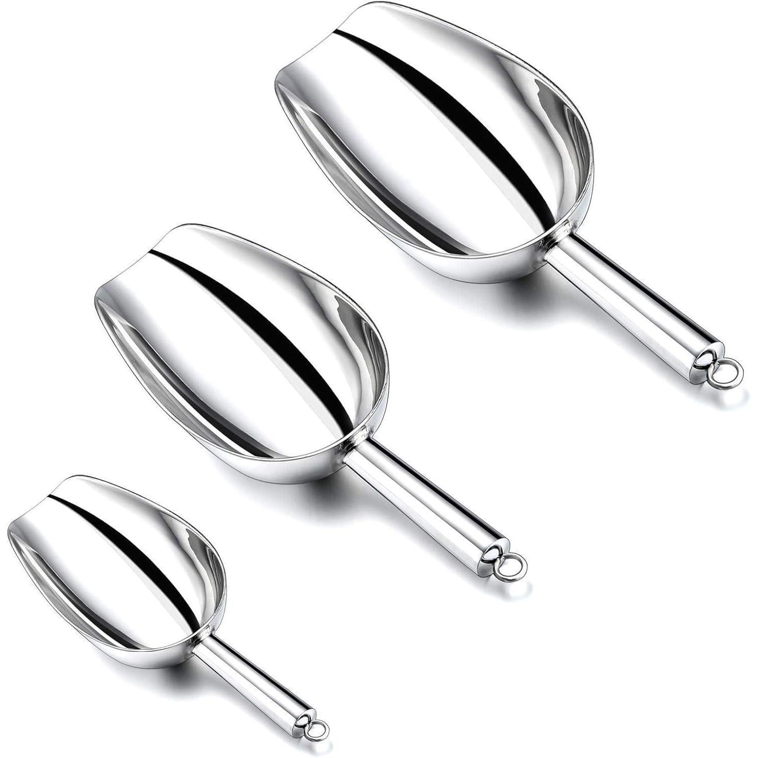 Hergestellt aus langlebigem Edelstahl sind die HaWare Eisschaufeln robust und unzerbrechlich. Der Griff ist fest mit der Schüssel verschweißt, um eine lange Haltbarkeit zu gewährleisten. Investieren Sie in dieses Set und ersetzen Sie Ihre alten Plastikschaufeln, um Ihre Küchenerfahrung zu verbessern.