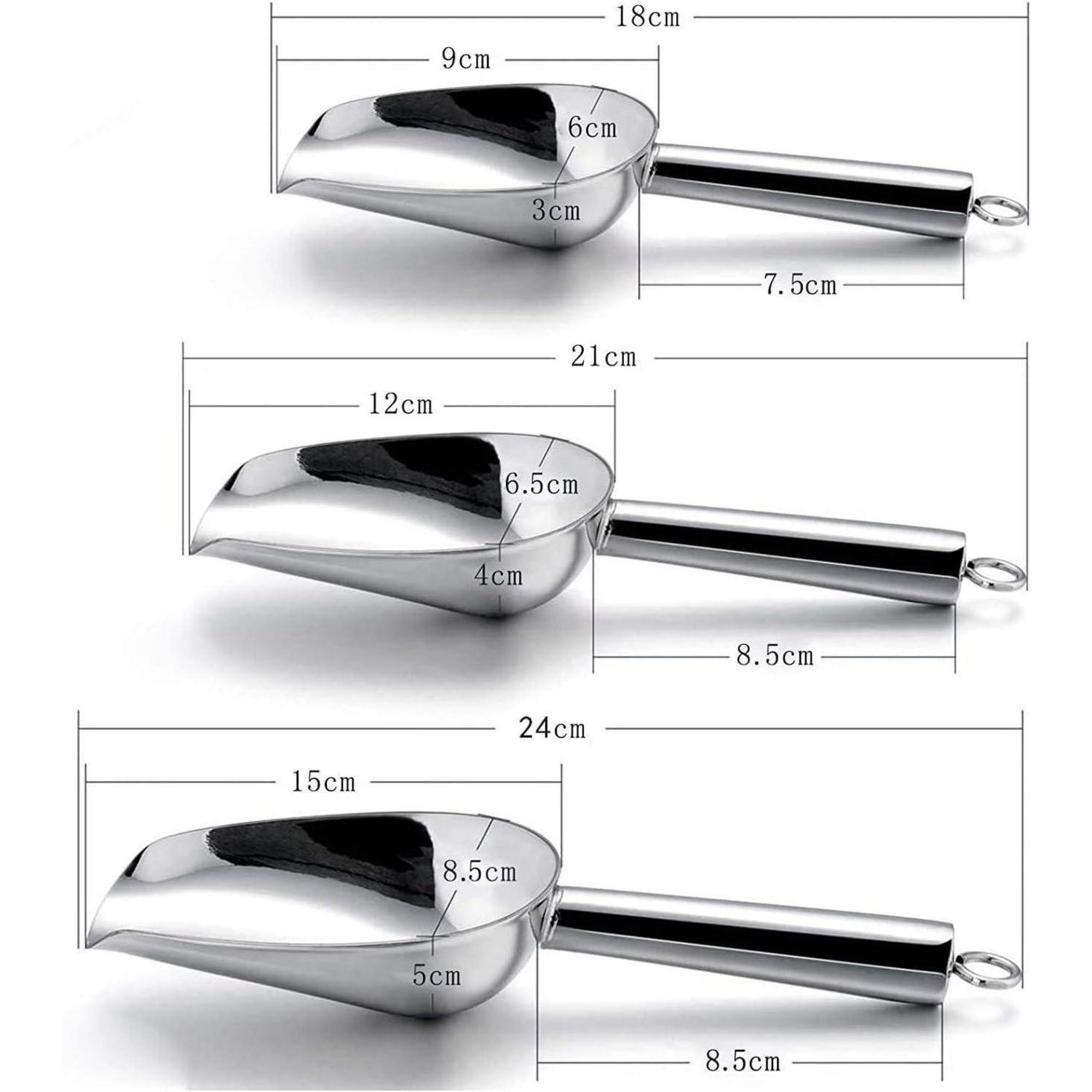 Das detaillierte Design der Schaufeln umfasst einen leicht gebogenen Schaufelkopf für einfaches Bewegen von Lebensmitteln und einen soliden Rohrgriff für bequemes Greifen. Die Schaufeln sind vielseitig einsetzbar und eignen sich perfekt zum Schöpfen von Lebensmitteln wie Eis, Süßigkeiten, Mehl, Pommes oder Popcorn. Darüber hinaus können sie auch als Haustierschaufeln oder Gartenschaufeln verwendet werden.