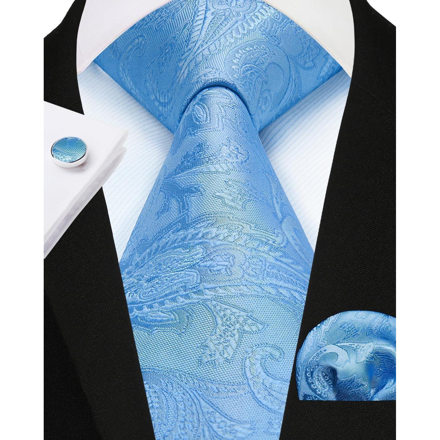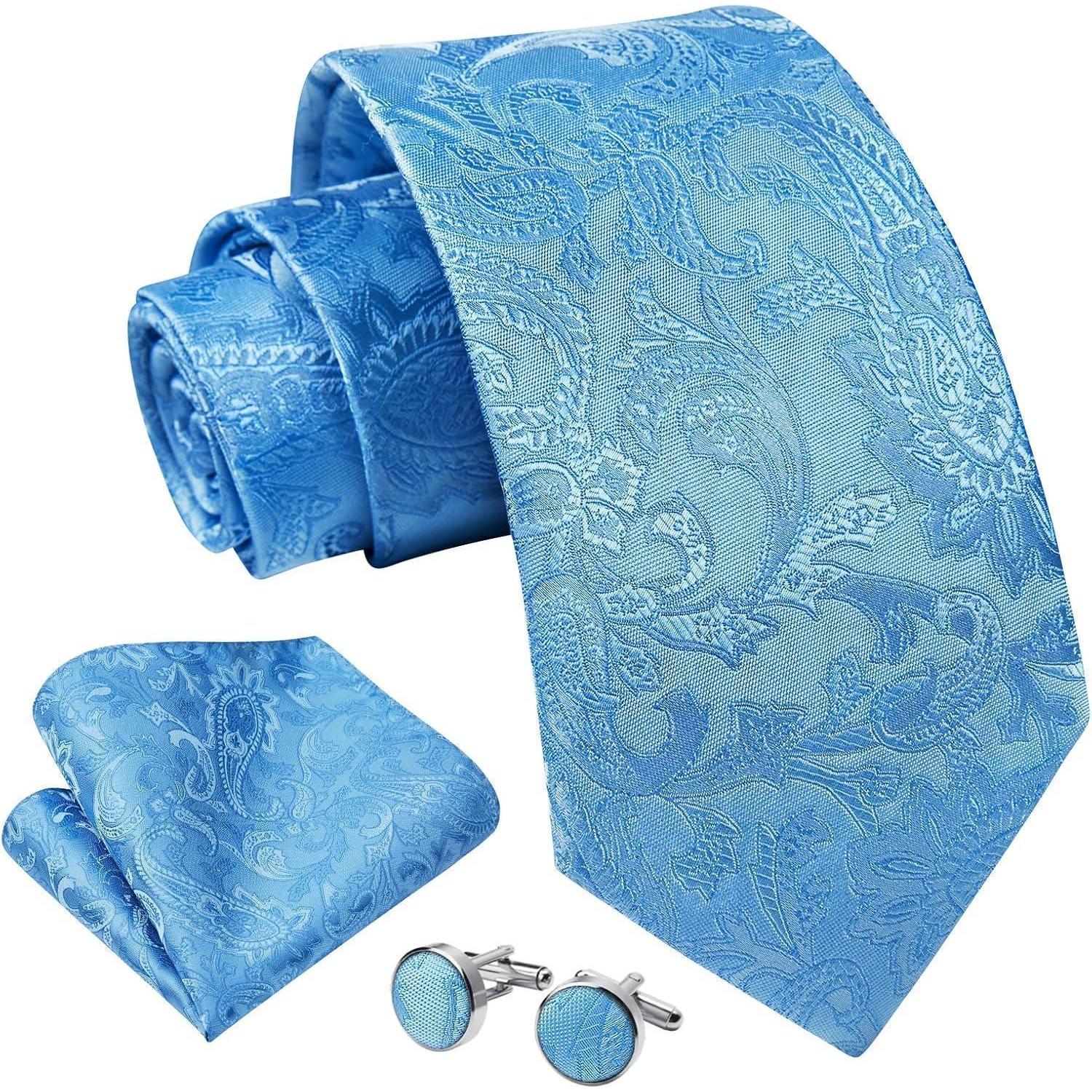 Die Krawatte hat eine Größe von 3,4 '' × 59 '' (8,5 cm × 150 cm) und das passende Taschentuch misst 12'' x 12'' (31cm x 31cm). Das Set wird komplett mit Manschettenknöpfen geliefert und ist in einem ansprechenden Design verpackt, perfekt zum Verschenken an Ihren Ehemann, Vater, Sohn oder jeden anderen männlichen Freund.