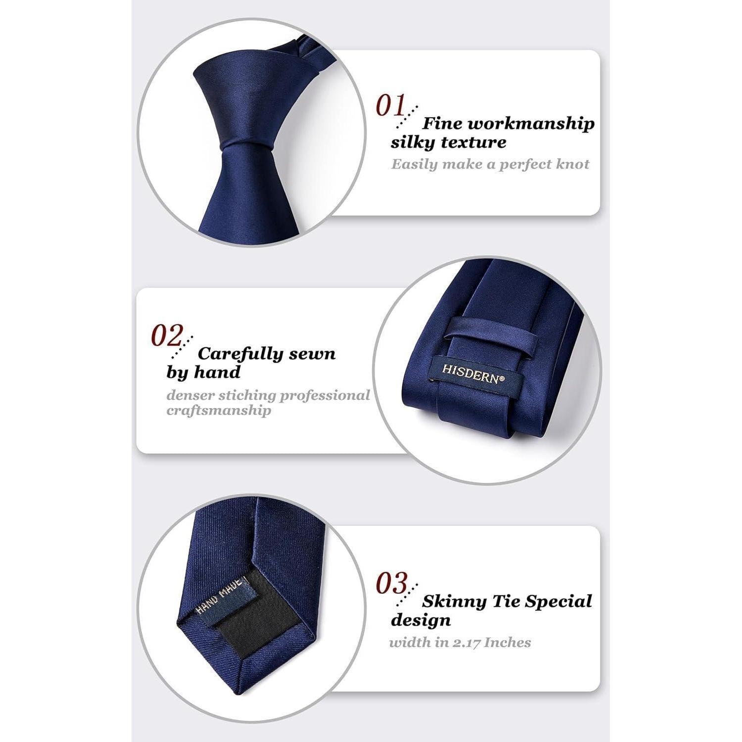 Die HISDERN Krawatte in Navy blau ist ein unverzichtbares Accessoire für stilbewusste Männer. Das Set aus eleganter Krawatte und passendem Einstecktuch ist perfekt für jeden Anlass, ob formell oder leger. Hergestellt aus hochwertigem, seidig glattem Mikrofasergewebe, ist die Krawatte langlebig und angenehm zu tragen.